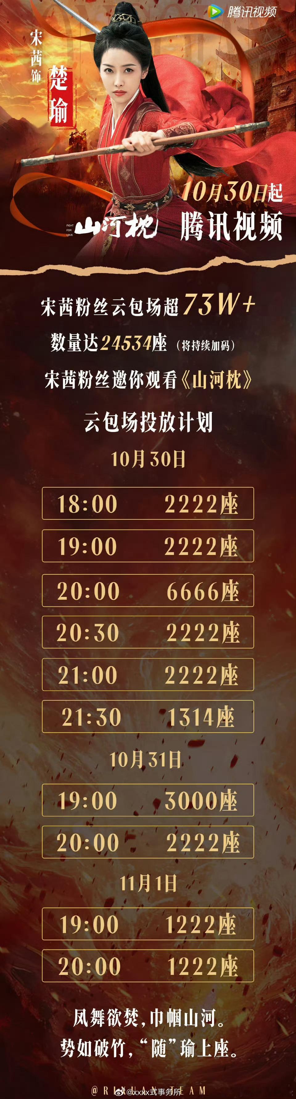 山河枕即将开播,丁禹兮宋茜粉丝云包场来了[哆啦A梦吃惊]