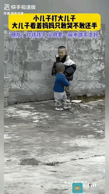 这么小的孩子就会欺负人 大儿子太老实了,小儿子不停的打大儿子,还扇大儿子的脸,大儿子看看妈妈,只敢哭不敢还手。 哥哥不是打不过弟弟,只是不敢打弟弟,打了弟弟,怕妈妈再打他。 作为妈妈,看到大儿子被小儿子打,为啥不制止?这样惯着小儿子,将来小儿子会变本加厉,甚至会越来越恶。 妈妈不合格,纵容小儿子,小儿子这么小就下手这么狠,将来可能变得无恶不作。 大儿子心善,不敢对弟弟还手,也许长大后,被弟弟欺负。妈妈看到这种情况,就要去制止小儿子,让小儿子知道,打哥哥不对,对小儿子请道理,只有这样,才能使孩子健康成长。 俗话说,惯子如杀子,父母太娇惯孩子,就是害了孩子,使孩人迷失方向。当孩子犯错时,给予适当的批评和指导,而不是一味袒护。 溺爱出逆子,溺爱孩子会导致养成自私自利,唯我独尊的性格,缺乏责任感和自理能力,最终成为叛逆不成器的“逆子”。 朋友们,你们对此事怎么看?欢迎讨论! 声明(视频来源于网络,侵权联系删除)