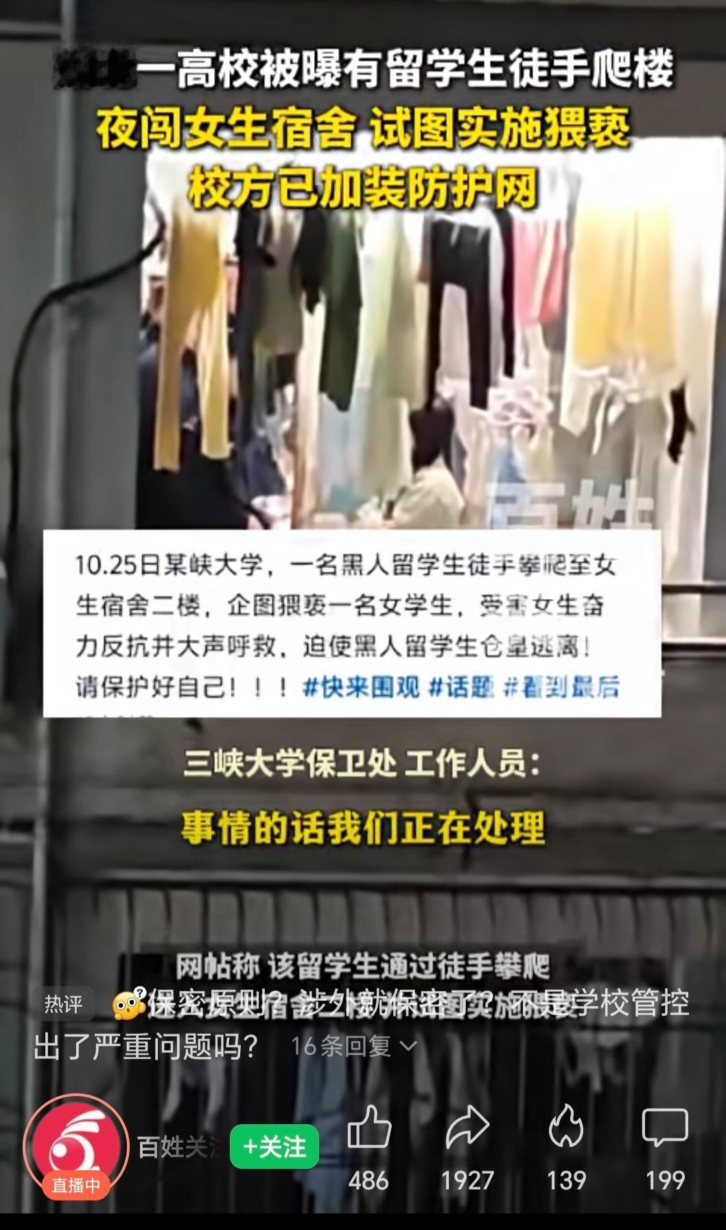 湖北宜昌三峡大学突发惊魂事件:10月26日凌晨,一名男性外籍学生徒手攀爬女生宿舍二楼潜入室内,对一名女生实施猥亵。事发后,公安机关迅速将其刑事拘留,学校于10月29日通报已作出开除学籍处理,目前涉事宿舍已加装防护铁丝网。但事件暴露出的校园安防漏洞、校方初期"捂盖子"操作,以及留学生管理争议,仍引发全网热议。本文结合法律条文解析处置依据,梳理网友核心诉求,探讨高校安全与公平管理的底线问题。 一、凌晨惊魂!徒手爬楼的"不速之客"与校方的反常操作 10月25日凌晨的三峡大学校园,本该是最安静的时刻,南苑女生宿舍却被一声呼救打破。一名外籍留学生竟然徒手攀爬二楼防盗网,潜入宿舍试图对一名女生实施猥亵。万幸的是,女生奋力反抗并大声呼救,才把对方吓跑,随后宿管阿姨立即报了警。 可接下来学校的操作,比事件本身更让学生心寒。有学生爆料,事发后相关宿舍的微信群直接被校方解散,还要求学生不准讨论此事,学校官方账号的评论区也悄悄关闭了。直到10月29日,距离事发已经过去4天,在舆论发酵后,学校才迟迟发布通报,承认外籍学生猥亵事实,宣布其被刑拘和开除学籍。 更讽刺的是,在"捂盖子"的同时,学校倒是先给宿舍二楼加装了带电防护铁丝网。有学生吐槽:"早把安防做到位,何至于出这种事?现在装网像亡羊补牢,可我们的安全感补得回来吗?" 二、法律不看国籍!刑拘开除背后的法律依据是什么? 1. 外籍身份不是"护身符",猥亵必担刑责 有人问"外国人犯法会不会特殊对待?"答案是绝对不会。根据《中华人民共和国刑法》第二百三十七条,以暴力、胁迫或者其他方法强制猥亵他人的,处五年以下有期徒刑或者拘役。只要在我国境内犯罪,不管是本国人还是外国人,都要适用我国法律。 此次警方直接对涉事留学生采取刑事拘留措施,说明其行为已经涉嫌刑事犯罪,而非简单的治安违法。即使最终因"未遂"等情节从轻处罚,刑拘记录和犯罪前科也会终身留下,而且根据《出境入境管理法》,外国人犯罪后还可能被附加驱逐出境,一旦被驱逐,10年内不得再入境。 2. 学校开除学籍,于法于规都必须 学校作出的开除学籍处理,完全符合规定。《普通高等学校学生管理规定》明确,学生实施猥亵、性骚扰等违反治安管理处罚法甚至刑法的行为,学校可以给予开除学籍的处分。 从法律责任来讲,学校不仅有处分权,更有安全保障义务。《民法典》第一千一百九十九条规定,学校对学生负有教育、管理、保护的义务。此次事件中,留学生能轻易攀爬进入宿舍,暴露出学校在宿舍安防、夜间巡逻等方面存在明显失职,如果女生因此遭受人身或精神损害,还可以向学校主张民事赔偿。 3. 校方"捂盖子"涉嫌违法 值得注意的是,学校初期解散微信群、禁止讨论的行为,已经涉嫌侵犯学生的知情权和言论自由。《未成年人学校保护规定》虽主要针对中小学生,但高校同样有义务保障学生的安全知情权,发生校园安全事件后,应当及时、准确地向学生和家长通报情况,而非隐瞒压制。 三、网友吵翻了:重点不是处理结果,是"早该避免"! 事件冲上热搜后,网友的愤怒集中在三个点上,评论区几乎一边倒: - 痛批校方失职:"4天不回应,先封嘴再补网,这操作太下头!" "留学生公寓和女生宿舍就隔一条马路,安防居然这么松?副校长巡逻看不见,宿管夜里不查岗?" 还有人翻出旧账:"之前就有高校留学生扰民、违规,学校都软处理,是不是早习惯'捂盖子'了?" - 质疑"超国民待遇":"网传留学生住双人公寓,拿高额补贴,本校学生挤四六人寝,资源差距这么大,管理却没跟上?" "追求国际化指标可以,但不能拿本校学生的安全当赌注!" 有网友直言:"一视同仁才是真的国际化,搞特殊化只会引火烧身。" - 呼吁彻底追责:"开除学籍、刑拘是应该的,但后续呢?女生的心理创伤谁来管?学校安防到底怎么整改?" "别光说'以此为鉴',得把整改措施一条条列出来,接受监督!" 也有理性网友补充:"不能一竿子打翻一船人,大多数留学生是来好好读书的,但坏的必须严惩。关键是学校要一碗水端平,安全防线要筑牢。" 结论:安防补网易,信任补漏难!这事儿该止于此吗? 现在涉事留学生被刑拘、遭开除,宿舍也装上了防护网,表面看事情有了"结果",但网友的疑问还没得到答案: 学校初期为什么要隐瞒?除了装铁丝网,还有哪些安防整改措施?网传的留学生"超国民待遇"是真的吗?对受害女生有没有心理疏导和赔偿安排? 校园安全从来不是"出事后补救",而是"事前杜绝"。加装铁丝网能挡住攀爬的人,却挡不住学生对校方的信任崩塌。法律面前人人平等,不管是本国人还是外国人。 你觉得学校的处理到位了吗?留学生管理该如何做到"一视同仁"?校园安防还该补上哪些漏洞?欢迎在评论区聊聊你的看法。