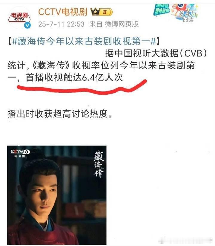 👖这里写的是首播户次数据,但是《以法之名》写的是人次!如果都按人次,那《藏海传》应该是6.4亿人次,《蛮好的人生》是8.2亿人次!👖想干啥?这都是官方出的数据,可不行搞混啊