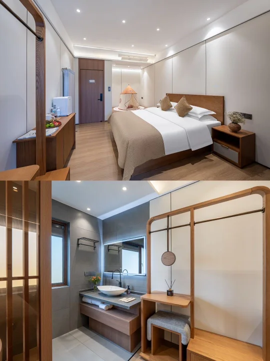 🚗周边玩法也超丰富:步行10分钟到溪边摸螺蛳、逛古村;开车20分钟到根宫佛国,看震撼的根雕艺术;傍晚在民宿的露台喝茶聊天,看夕阳把稻田染成金色,这种慢节奏真的太舒服了~