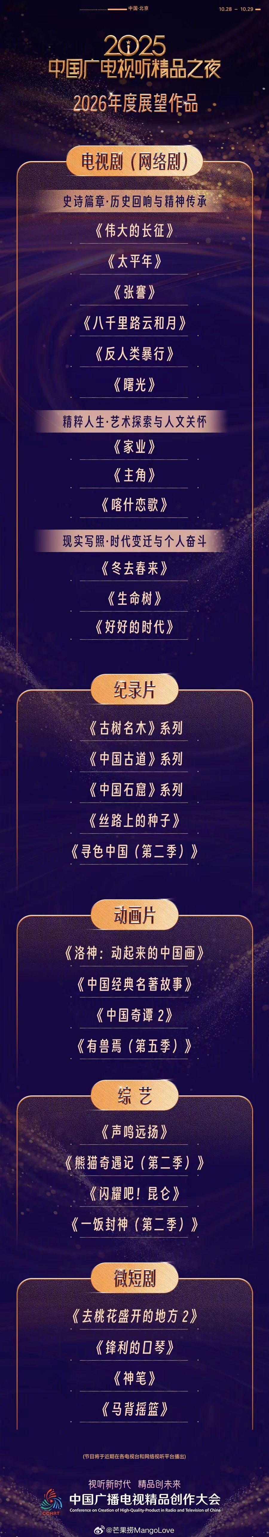 伟大的长征、太平年、张骞、八千里路云和月、反人类暴行、曙光、家业、主角、喀什恋歌、冬去春来、生命树、好好的时代