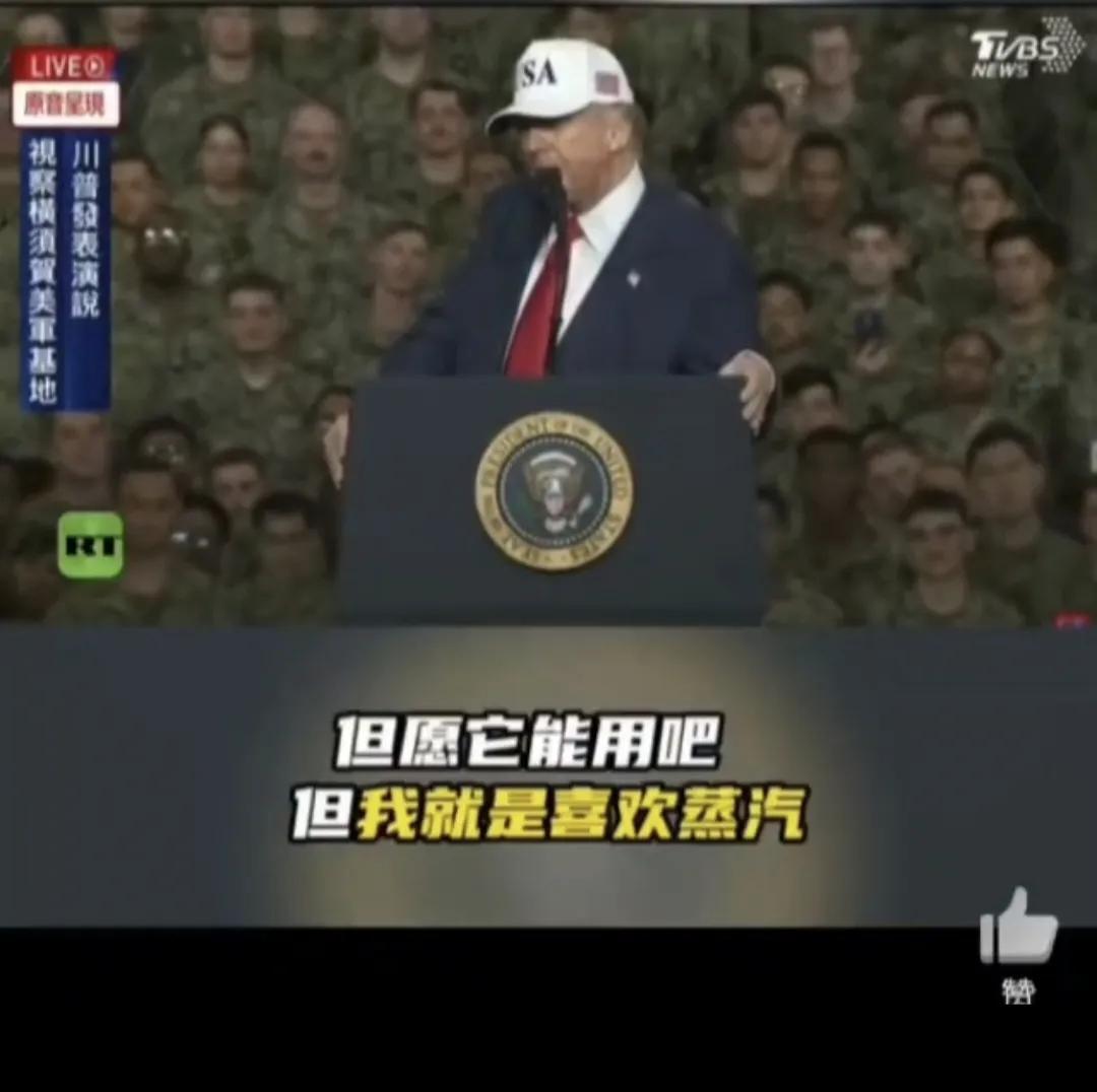 美国总统老特在日本横须贺的美国海军“华盛顿”号航母的机库里发表演讲称,他将签署一项行政令,强制要求在福特级航母上重新恢复使用蒸汽弹射器。这话让美国海军高层大惊失色,辛辛苦苦几十年才搞出来电磁弹射器,一下子被老特给拽回到以前。 从老特的很多言行能够清晰地看出他是典型的老白男,是开倒车的。他反对发展新能源,反对造电动汽车,反对电磁弹射器。只要是新技术,他基本都反对。就这还想让美国再次伟大,做梦!他是不干废美国不罢休!