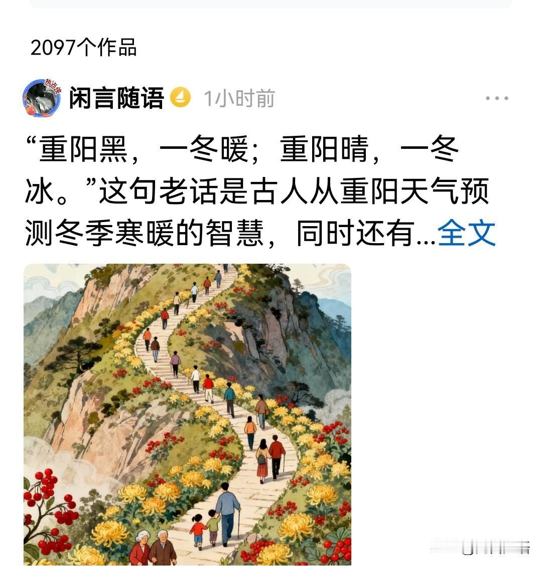 不经意间发现我的作品已达到了2097篇!这些文字,就像自己亲手送出门的孩子,每一个都打着“闲言随语”的家族烙印,闯荡江湖。 今晚写下这第2098篇时,想起给它们的“家族训言”——那首个性签名: 本是闲散人,今常驻头条。 无酒偏说醉后言,笑骂皆成帖。 曾抱雪霜志,今余江湖谑。 说到中年意气平,指下流光灭。 这短短的几行字,竟成了我半生心路的写照。从雪霜志到江湖谑,从醉后言到流光灭,其间经历的心酸、苦涩、甜蜜,都沉淀在这2097篇作品里。 有人说写作是修行,我深以为然。 每一篇作品都是与自己的对话 在文字里推敲,在表达中释怀,在发布后放下。棱角分明时写的那些字,如今读来依然能触摸到当时的温度;渐渐圆润后留下的篇章,则多了几分回甘的余味。 我常觉得自己还在山脚下转悠。 看着别人登顶的身影,不是没有过不甘和不服。但转念一想,或许我攀登的本来就不是同一座山。别人的山有明确的高度和路径,我的山却每一步都是自己的风景,每一篇作品都是一处独特的观景台。 有人问我坚持的动力是什么? 若说为了钱,怕是要让人笑话 这些年的收获,大多装在了行囊的内侧:老朋友的始终相伴,新朋友的不期而遇,那些通过文字达成的默契与懂得,那些在评论区的会心一笑。这些精神上的富足,远比物质来得珍贵。 如今两千多篇作品出门在外,偶尔也会想:它们过得好吗?是否遇到了懂它们的人?但既已送出,便如蒲公英的种子,飘向各自的缘分。重要的是,我还在写,写作于我,早已不是选择,而是存在的方式。 所以,我依然在路上,如果你也在自己的路上攀登,不妨结伴同行~ 我们不问顶峰在何处,只顾欣赏沿途的风景,在每一个值得驻足的地方,留下真诚的文字。 毕竟,这座叫做“创作”的山,最美的不是登顶的瞬间,而是攀登本身。而我的2097步,只是下一个篇章的开始。