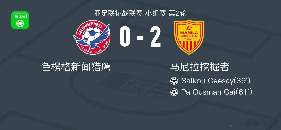 今天下午进行的一场亚足联挑战联赛中,中资球队马尼拉挖掘者队2:0战胜蒙古冠军色愣格新闻猎鹰队,两战全胜,积6分提前锁定东亚区半决赛