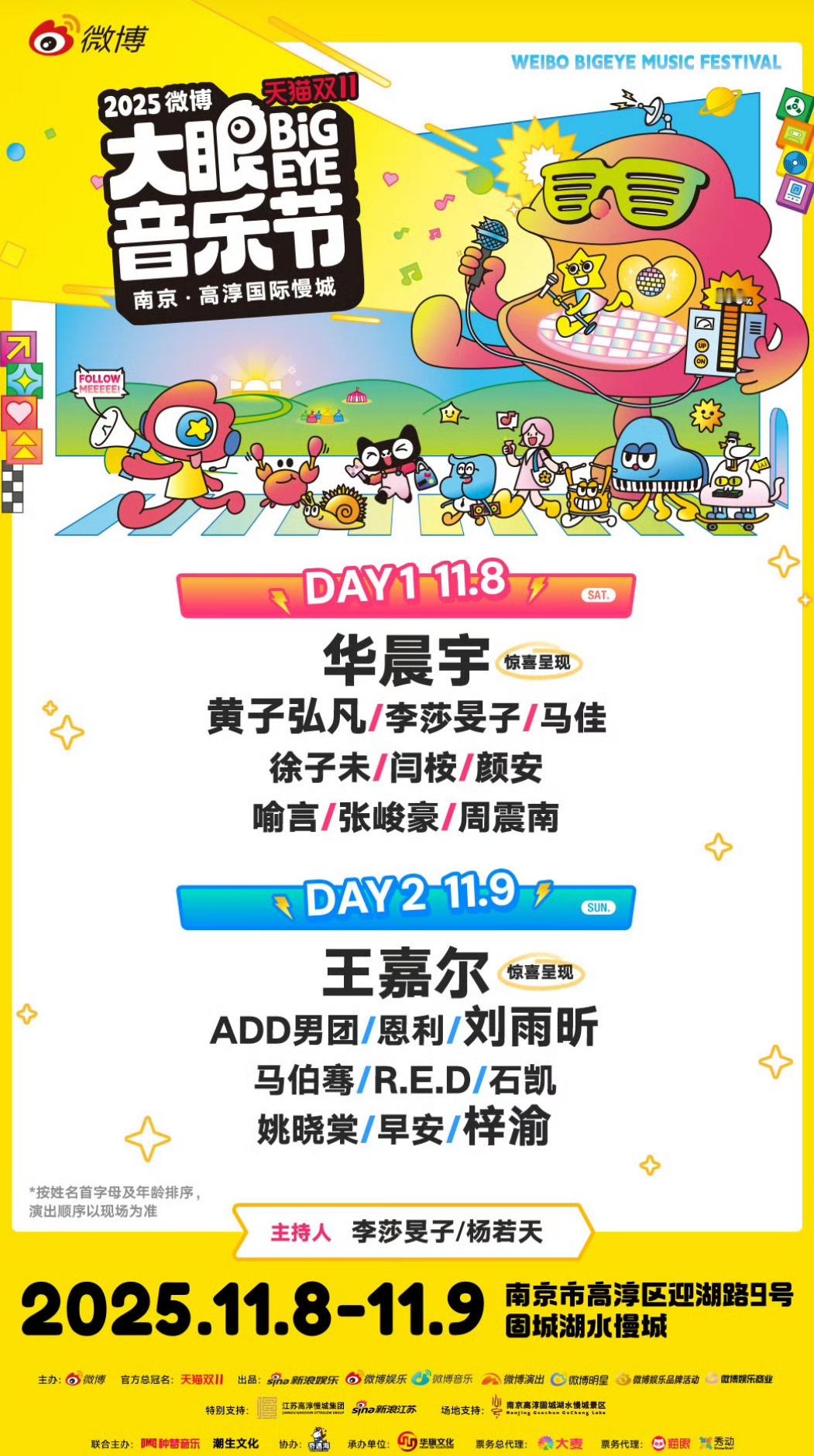 大眼音乐节阵容:华晨宇 王嘉尔 刘雨昕 梓渝 闫桉 张峻豪 喻言 周震南 马伯骞