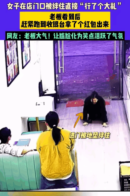 “笑不活了!”浙江,女子进奶茶店,突然被门口垫子绊到。没想到,老板看到后,赶紧从收银台拿了个红包,递给女子。网友: 这老板大气,让尴尬化为笑点,活跃了气氛。 视频中,这位穿黑色衣服的女子刚一只脚踩在店门口的垫子上 这看似随手的巧妙应对,背后藏着老板的高情商。他懂得人在尴尬时刻那份微妙的窘迫,用一个小小的红包,既化解了顾客的尴尬,又把可能的投诉纠纷转化成了温暖的记忆点。 生活中太多商家在意外发生时选择推卸责任。温州那家排档的钢管砸中顾客头部后,老板竟强硬辩解是“天灾”,连受害者合理的医疗补偿都推三阻四。比较之下,奶茶店老板主动递出的那个红包,瞬间提升了店铺的格局。 红包在这里早已超出面值本身,成了一种情感符号。它传递的是“我注意到你的不适,我在乎你的感受”的善意。就像婚礼上新娘向宾客抛洒小红包分享喜悦,金额不重要,那份心意才是关键。 总有人质疑这种小恩小惠的实际价值,但人与人之间的连接,往往就是靠这些看似微不足道的善意建立起来的。老板舍弃了冷冰冰的免责声明,选择了更有人情味的解决方式。 真正聪明的商家,明白经营的核心不是产品,而是人心。浙江另一女子为“课程退费”骗局藏现金11万,骗子的冷酷与奶茶店老板的温暖形成了鲜明对比。谁更能赢得顾客,答案不言而喻。 各位读者你们怎么看?欢迎在评论区讨论。