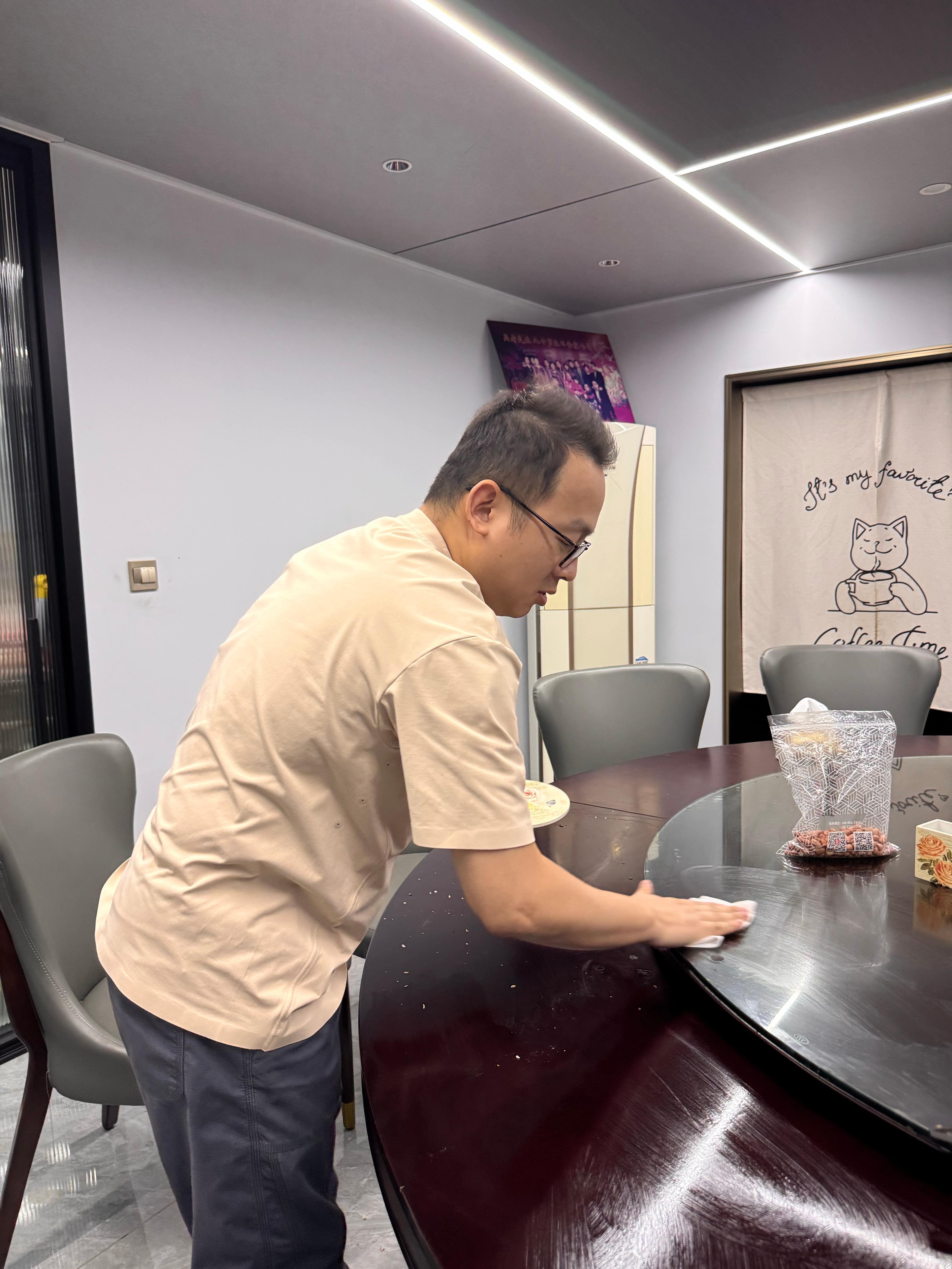 早上安姐是他送的,送完去杭州接安奶奶,接完安奶奶回来后,又去接安姐,陪写作业,吃完晚饭,送安姐去上古筝课,送完回来又上楼收拾了桌子,我上楼打算收拾的时候,发现他已经收完了。