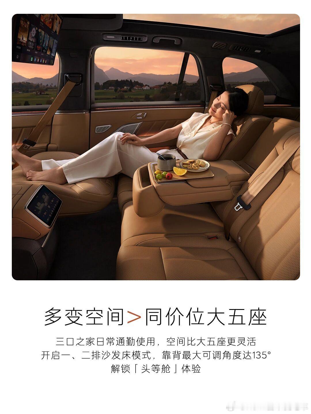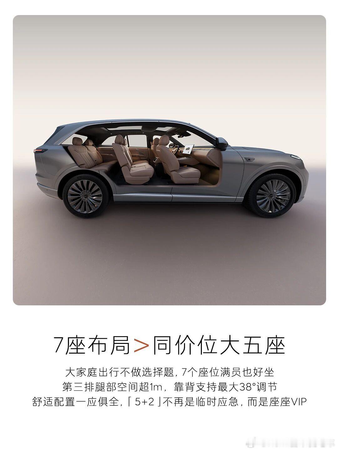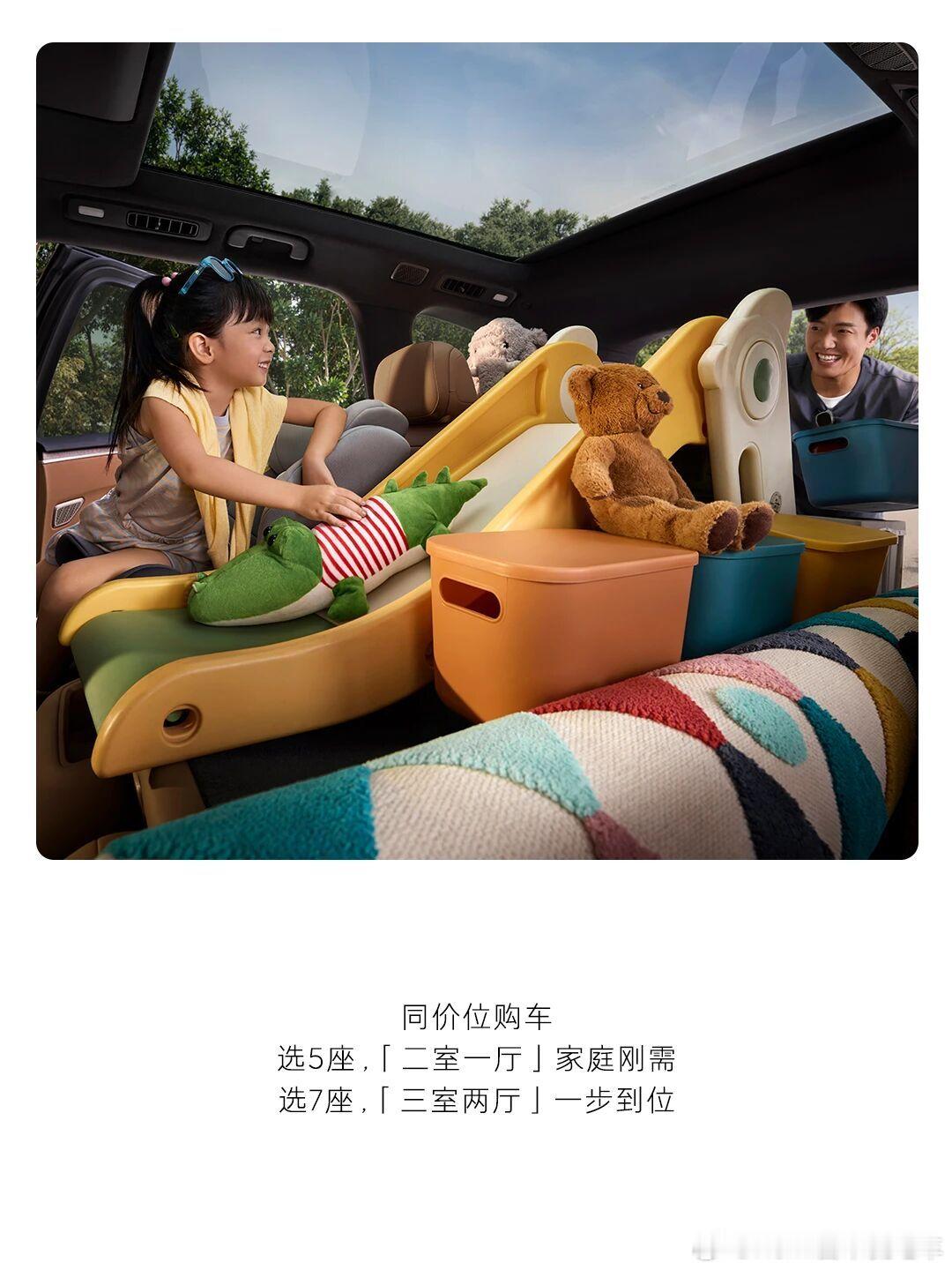 1、7座的布局也是232布局,日常情况下可以放倒第三排,这样一样是一个大五座,但是你可以获得超大的后备箱,可以存放很多东西。