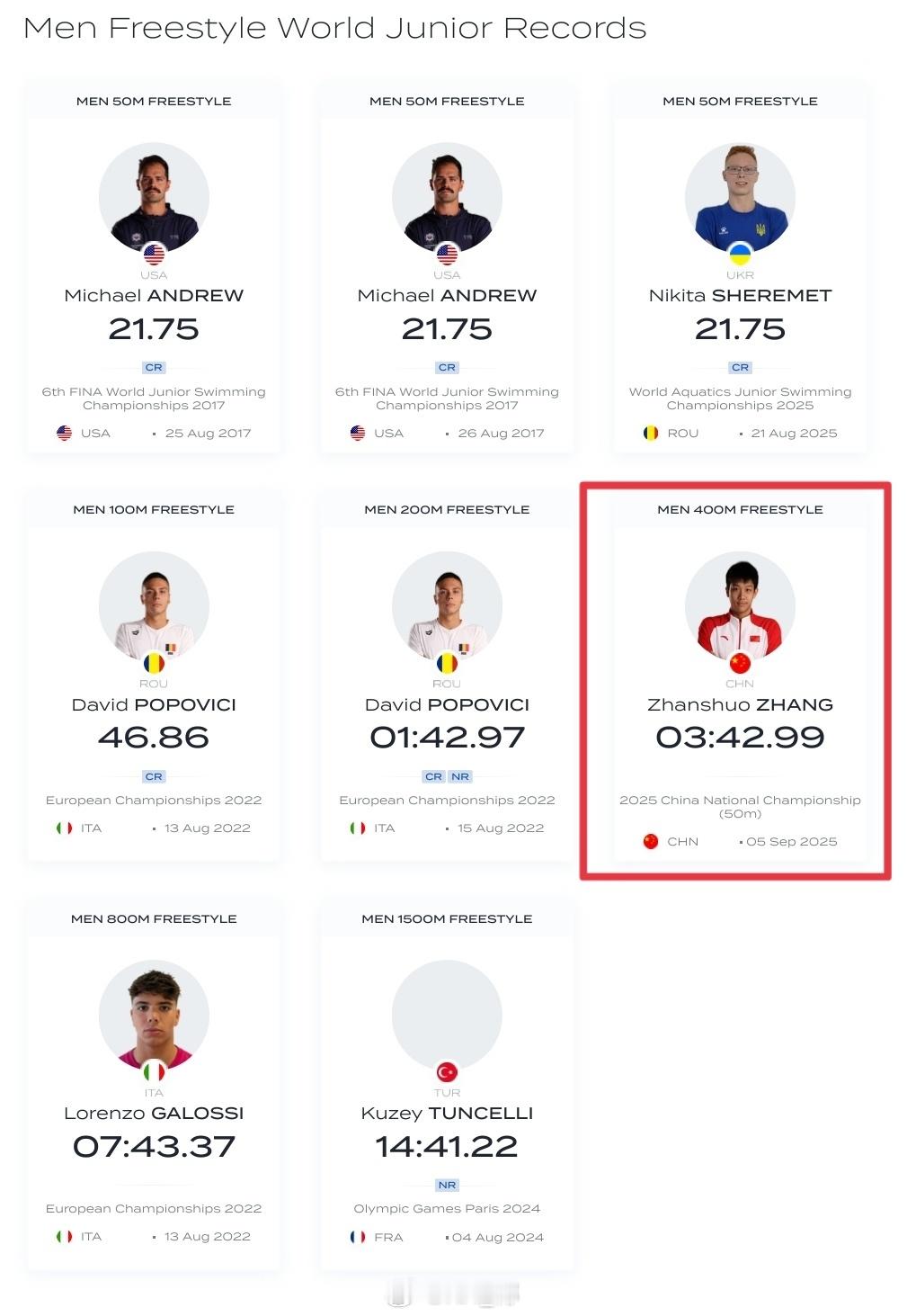 小张在全锦赛3:42.99的世青纪录认证成功✅期待全运会再次刷新!
