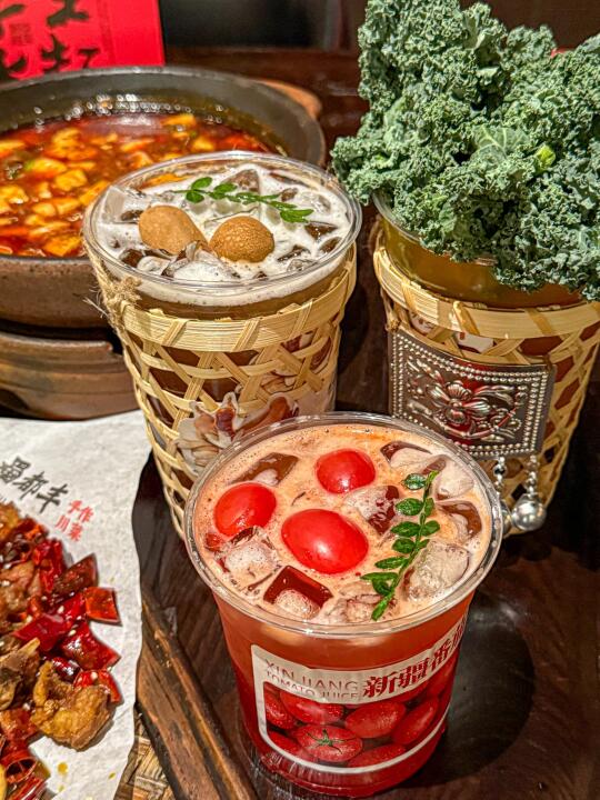 没想到在一家川菜店喝到了超好喝的山野饮料诶!!!每一款都既健康又好喝~越喝越上头! 我蕞喜欢山野胡萝卜橙~橙子🍊味很清新!和胡萝卜意外的很搭诶! 甘草罗望子饮和和番茄黑枸杞凤梨汁是酸甜的口感~两种完全不同的酸! - 他家不仅饮料好喝~川菜味道也好z宗!水煮鱼都是活鱼现煮~辣子鸡和牛肉麻婆豆腐香香麻麻好下饭! 📍 蜀都丰 水煮鱼·川菜(万象城店)