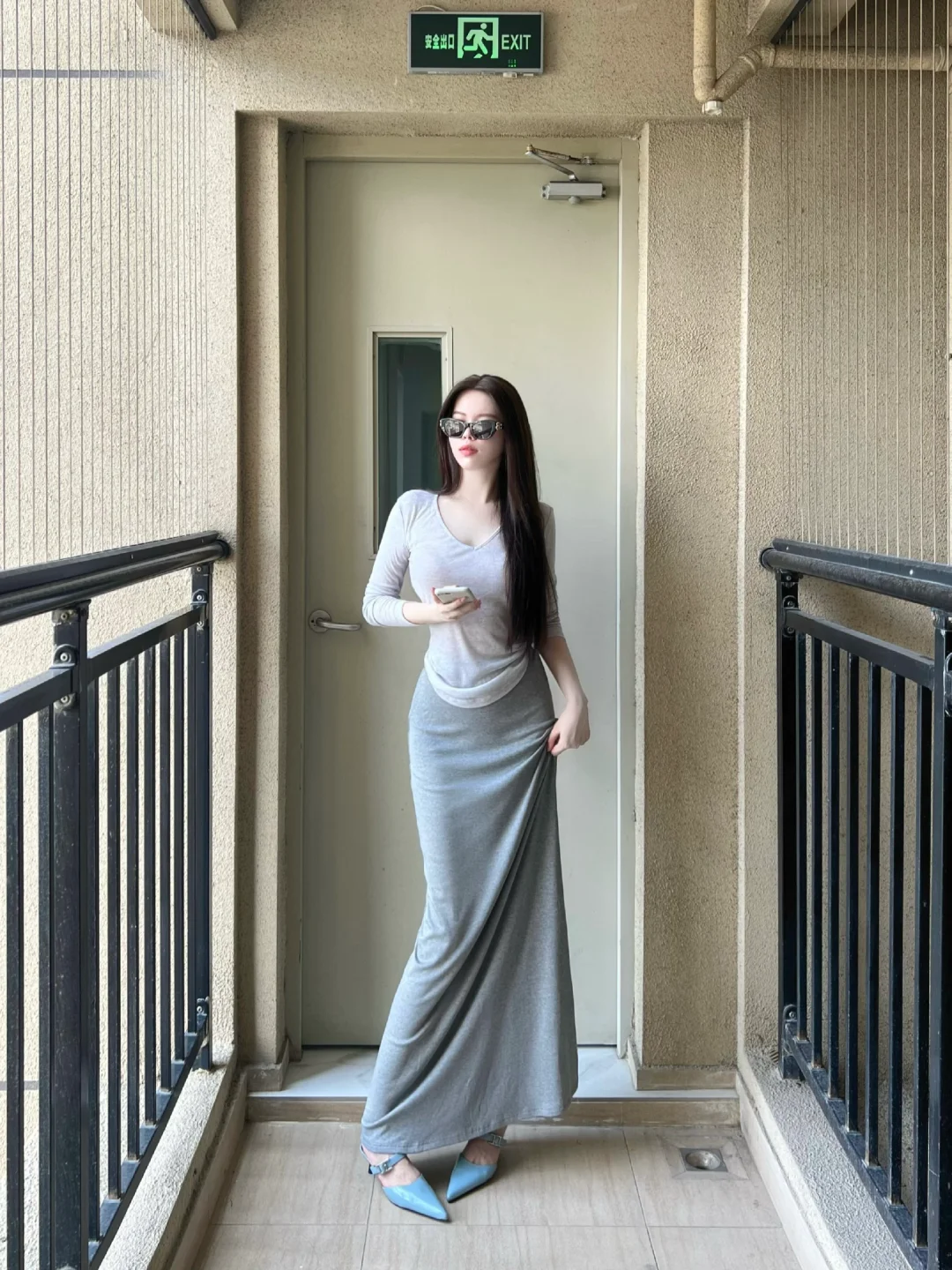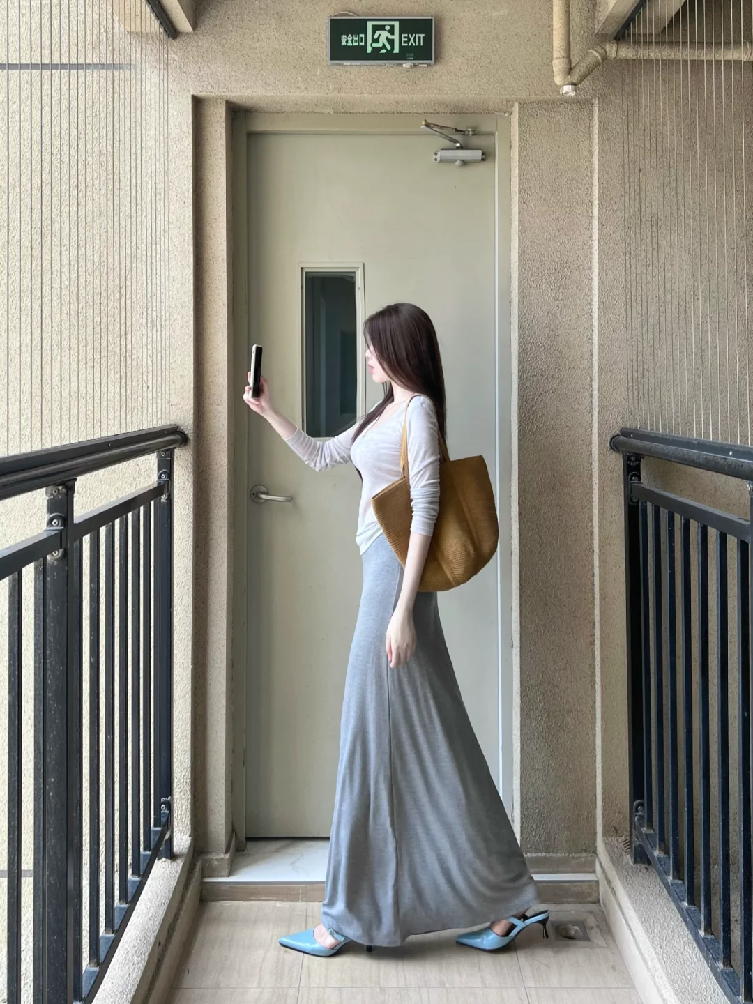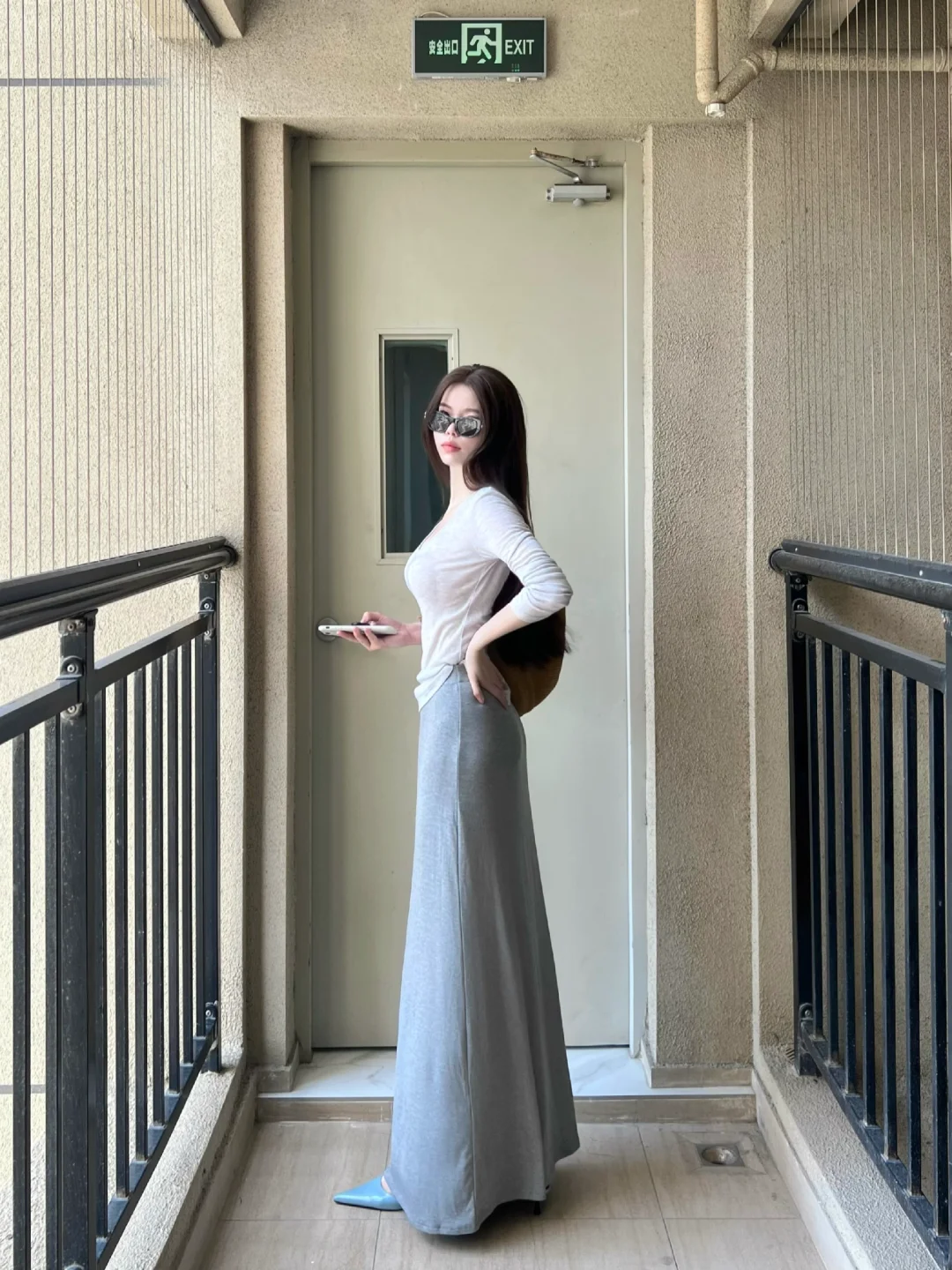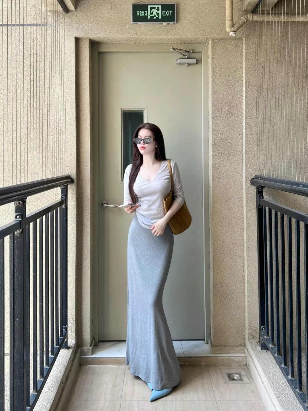 极简穿搭 早秋穿搭 灰色系 美女感穿搭 气质穿搭 通勤穿搭 显瘦裙子 梨形身材