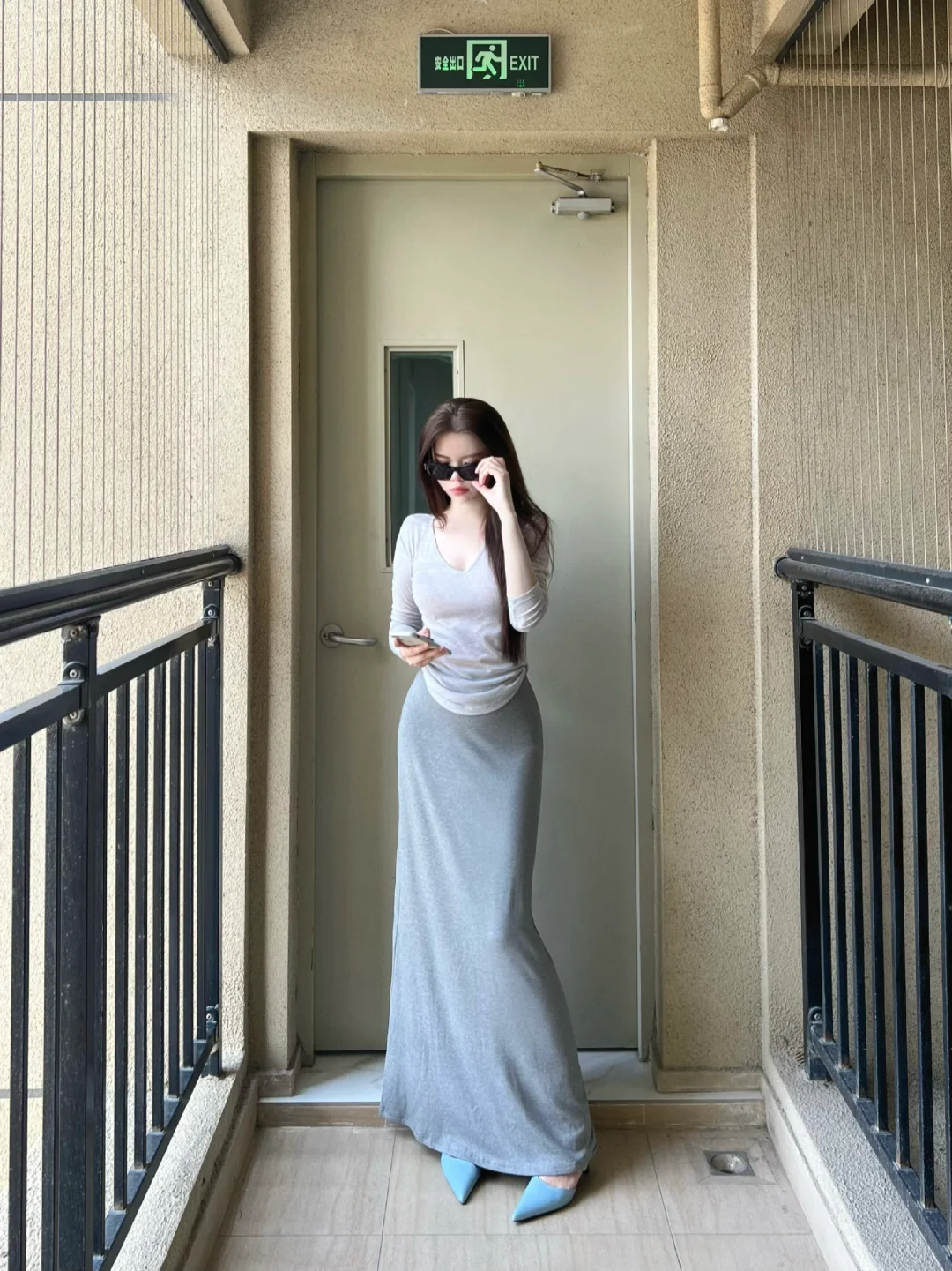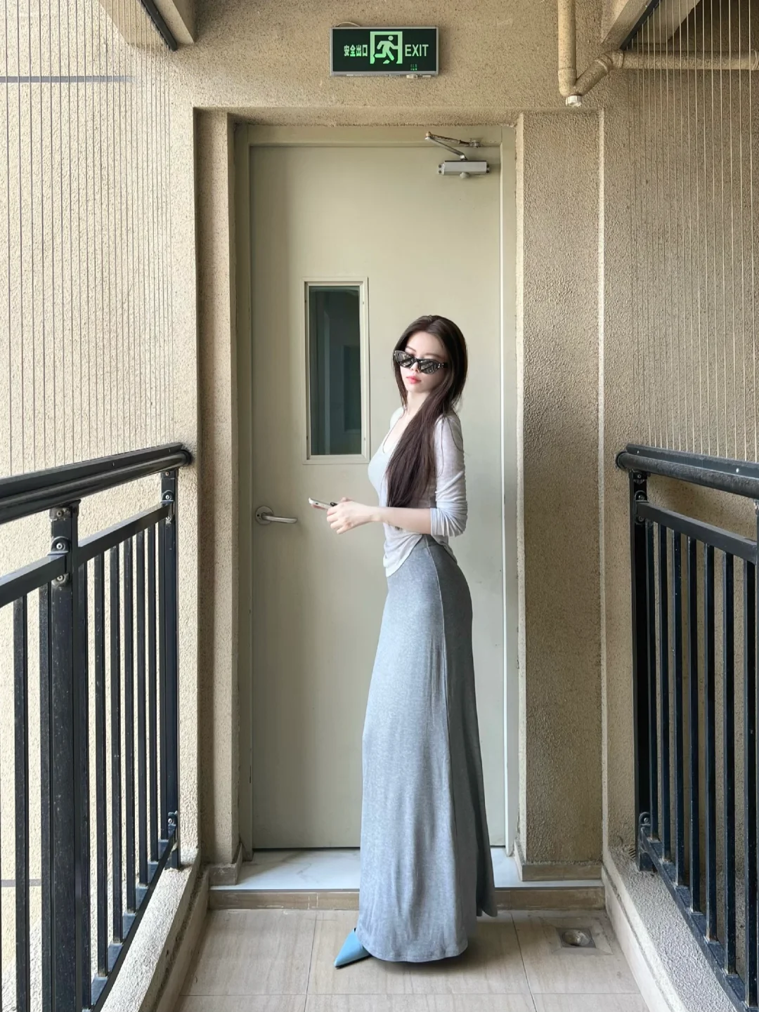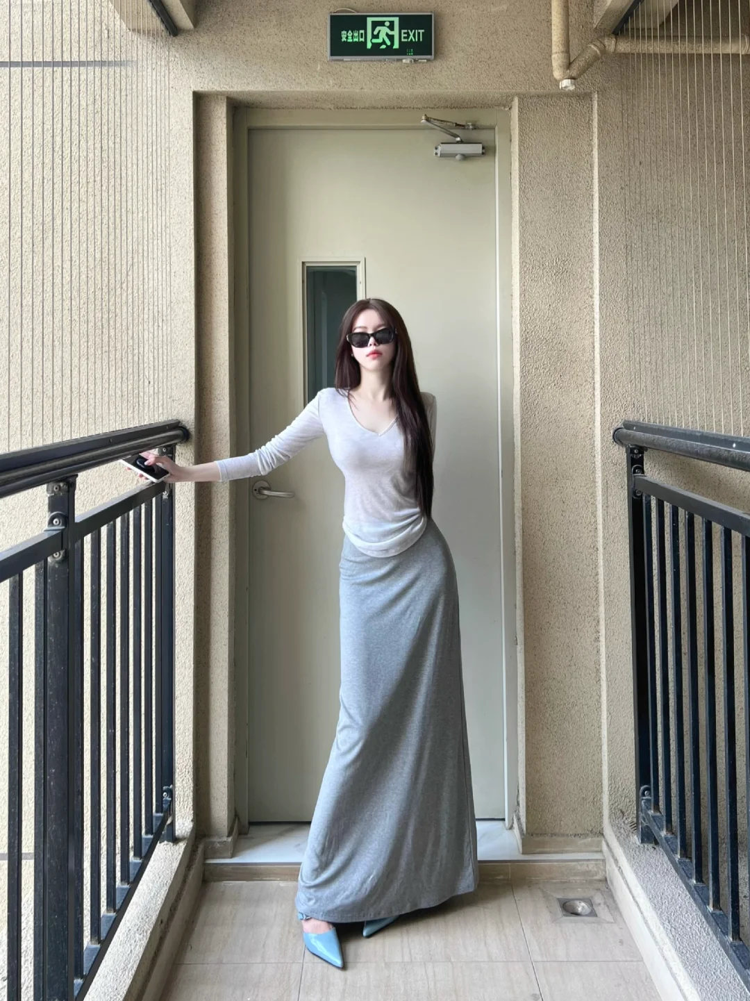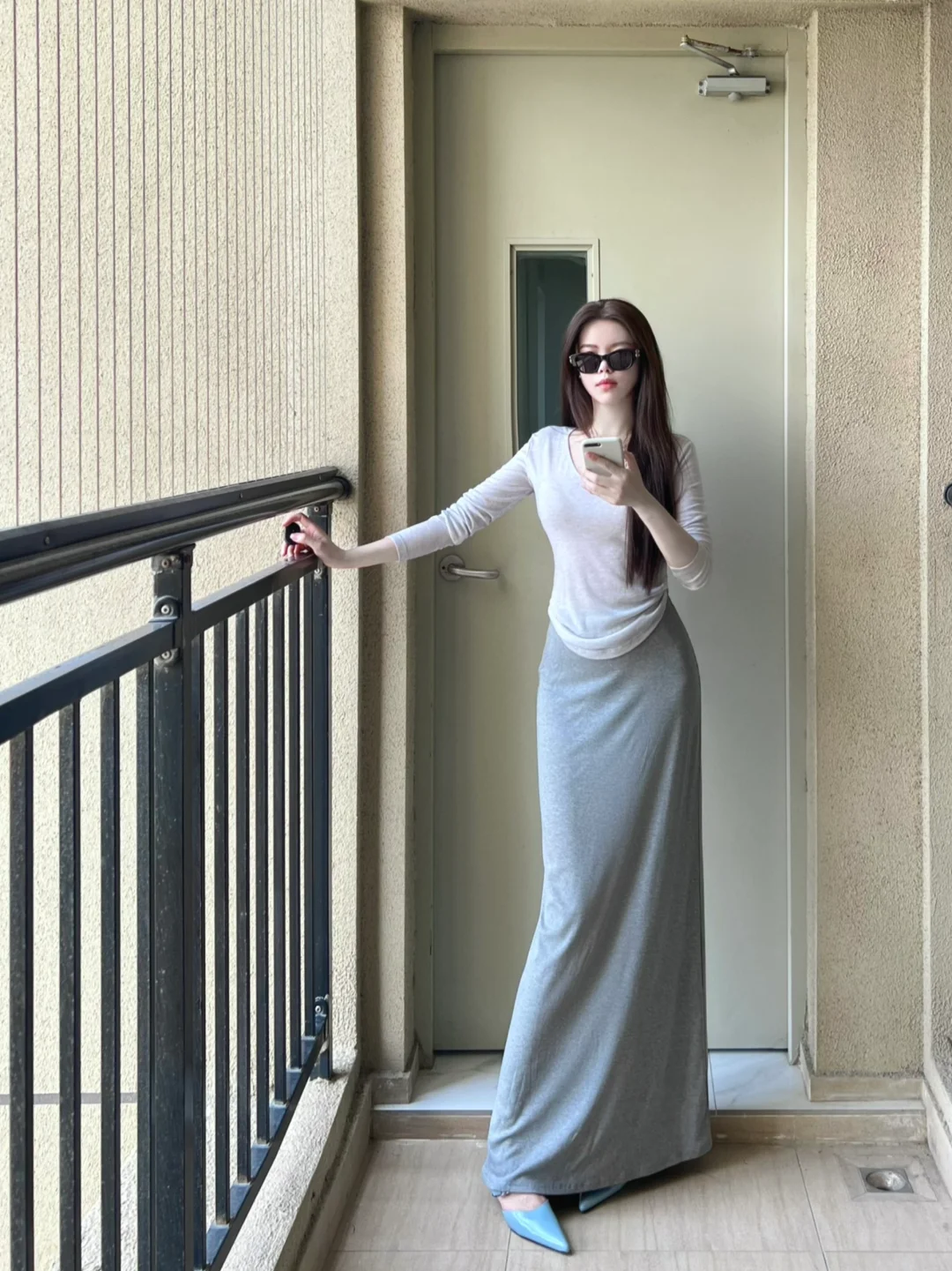 极简穿搭 早秋穿搭 灰色系 美女感穿搭 气质穿搭 通勤穿搭 显瘦裙子 梨形身材