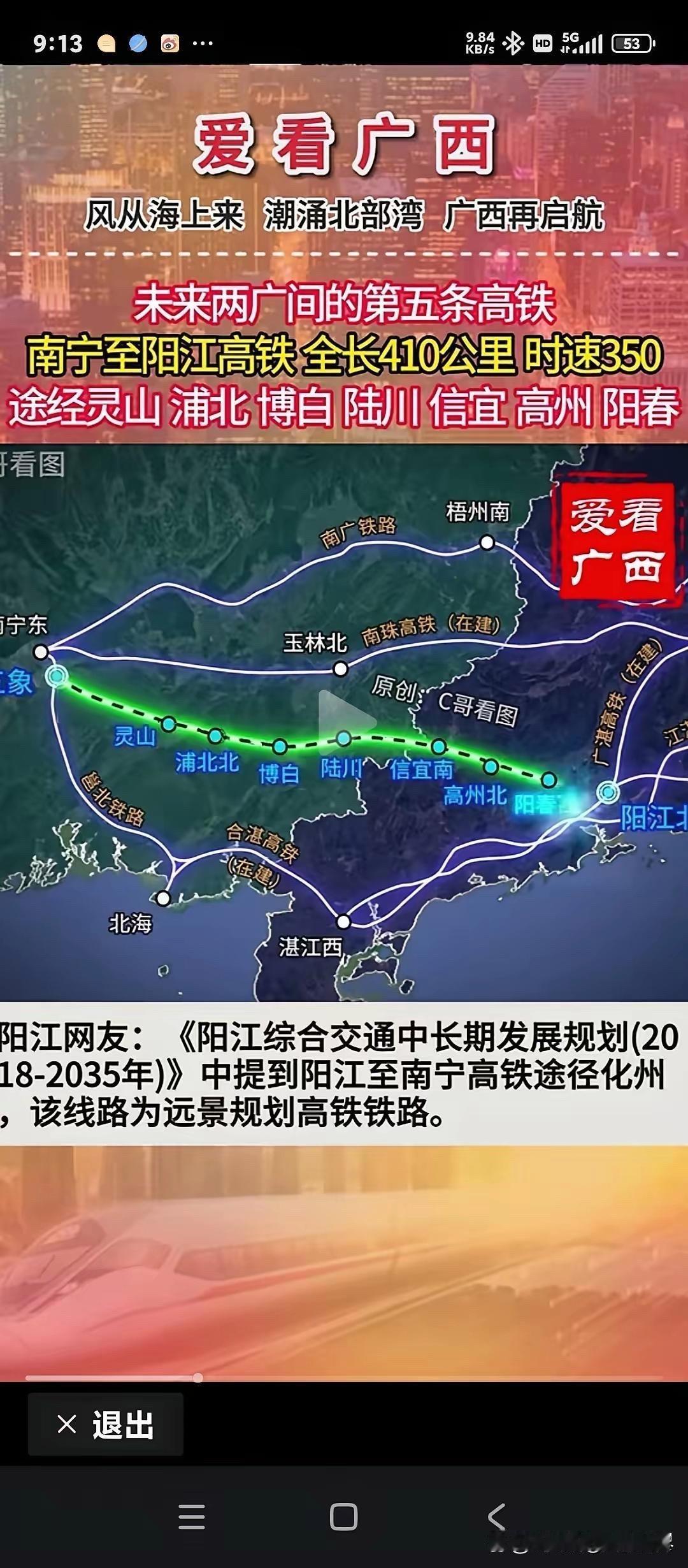 这条高铁, 是民心所向, 民心所盼! 这条高铁能实现开工,靠谱得多了,至少途经的县多,人流量也多,最主要是向往人人需求的, 比那个北上岑茂高铁, 跑去珠三角的! 南广、南深和这个所谓的南(宁)阳(江)高铁的走向,在荒无人烟的深山野岭严重重叠了。那所谓的南阳线路所经的阳江,才两三百万人口呀。改作为南(宁)茂(名)高铁再接阳江的线路走向吧,那才能是较有效益才能可运营维续的高铁。还是听听这金玉良言为好吧。