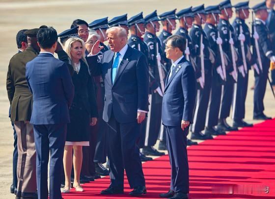 特朗普总统抵韩举拳致谢,享21响礼炮最高礼遇 29日,美国总统特朗普抵达