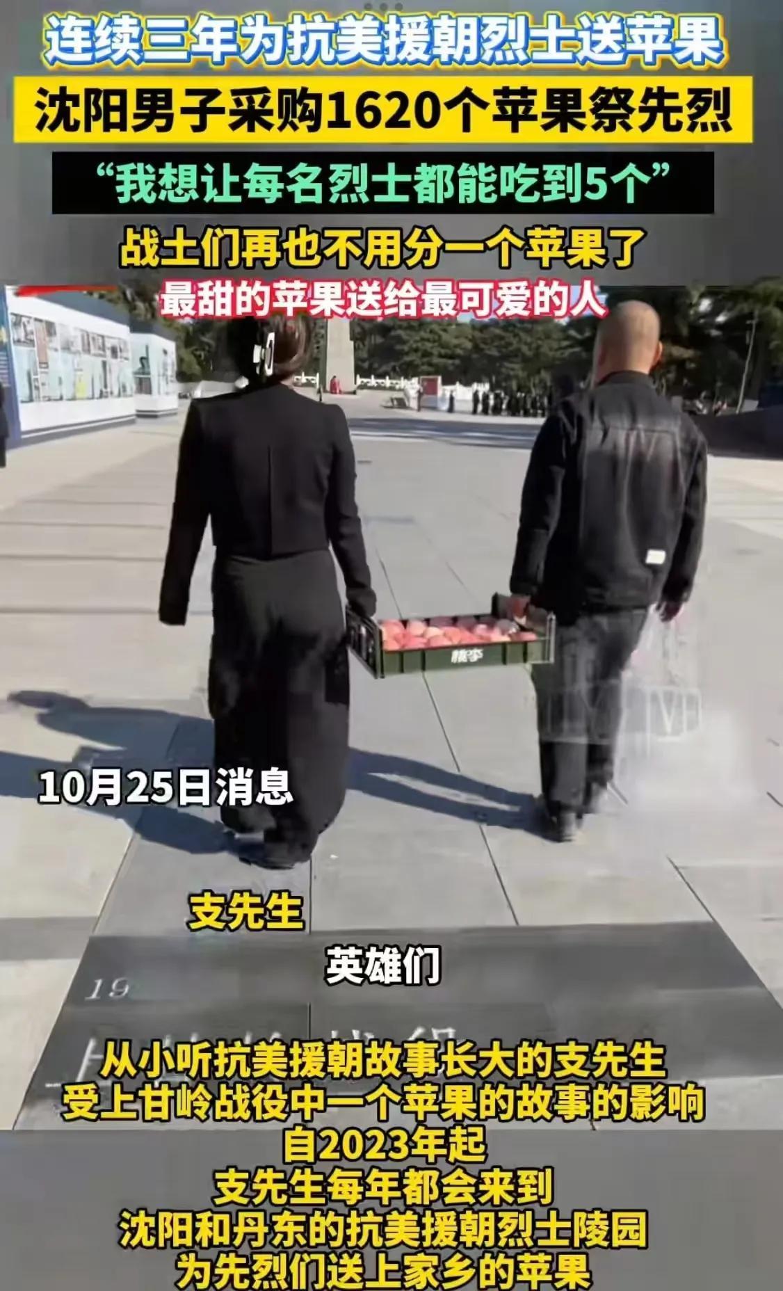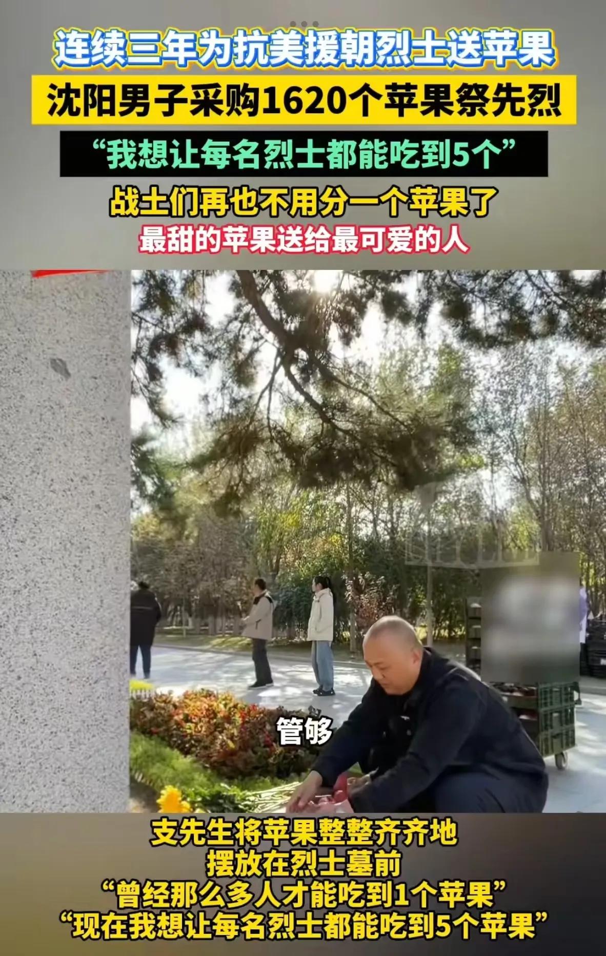 一大早就被感动哭了!沈阳ICON,47岁的普通男子,却用行动诠释了什么是真正的“英雄情怀”。他带着1650个苹果,穿越千里,从沈阳到丹东烈士陵园,只为完成一个看似简单却意义非凡的心愿:在每一位烈士的墓前,放上五个苹果。 这背后,藏着一个令人心碎又温暖的故事。你知道吗?在上甘岭战役中,英勇的战士们为了国家和民族的未来,奋战到最后一刻。那时,8个战士共享一个苹果,简朴的生活中,苹果成为了他们的“奢侈品”。他们用血肉之躯,为我们换来了和平岁月。而今天,凡是看到这些苹果的人,心中都泛起一股莫名的感动。 这位男子名叫李伟,一个普通的工人。他说:“我一直有个心愿,想让那些为了国家牺牲的英雄们,知道我们还记得他们,感谢他们的奉献。”也许有人会觉得,这只是个简单的举动,没什么特别,但细细想来,这正是我们这个时代最需要的情感共鸣。 在快节奏的生活中,许多人都在追逐物质的富足,却忽略了心灵的温暖。李伟的行动告诉我们:尊重历史,铭记英雄,不一定要多么轰轰烈烈的仪式,一份真挚的心意,远比任何华丽的词藻更有力量。 这场“苹果祭”也引发了许多网友的热议。有的说:“感动得想哭,英雄们的精神永远不会被忘记。”有的则评论:“我们是不是也应该用行动去表达对英雄的敬意?不仅仅是祭拜,更要在日常生活中传承他们的精神。”甚至有人调侃:“下次是不是也该带点苹果去慰问一下那些默默守护我们的平凡英雄,比如环卫工、快递小哥?他们也是城市的英雄啊!” 其实,这个世界上,有太多像李伟一样普通的人,用自己的方式守护着我们。这种力量,来自于对生命的尊重、对历史的敬仰、对未来的希望。它们不需要轰轰烈烈的场面,只要一颗真诚的心,就能温暖整个社会。 或许,我们每个人都可以从身边的小事做起,把对英雄的敬意变成日常的行动。无论是关心身边的人,还是传递正能量,都在无声中延续着那份温暖。正如那一颗颗苹果,不仅仅是水果,更是对英雄的感恩和铭记。 这次“苹果祭”,不仅仅是一次简单的祭奠,更像是一场心灵的洗礼。它让我们重新审视自己的生活态度:我们是否也能像这位男子一样,用行动去表达那份沉甸甸的感情?我们是否也能在平凡中,找到不平凡的价值? 也许,未来的某一天,当我们回头看今天的自己,会发现,那些看似微不足道的小事,正是我们最珍贵的记忆。正如李伟用一颗颗苹果,串联起了过去与未来,连接了无数人的心。 在这个快节奏、充满压力的时代,或许我们都需要一些“苹果”——一份简单的心意,一份温暖的传递。让我们从身边的小事做起,把感恩、敬意和善良,融入到每一天的生活中。只有这样,我们才能真正成为那个让这个世界变得更美好的力量。 所以,下次当你看到一颗苹果时,别只把它当作水果,更要想到那些为了我们今天幸福生活,献出生命的英雄们。让我们用行动去传承他们的精神,让这份感动,永远在心中生根发芽。因为,真正的英雄,从未远去,他们就在我们每一个人的心里。
