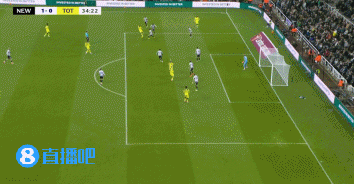 纽卡中框!第40分钟,佳夫门前横传,巴恩斯绝佳机会凌空扫射击中横梁。↓