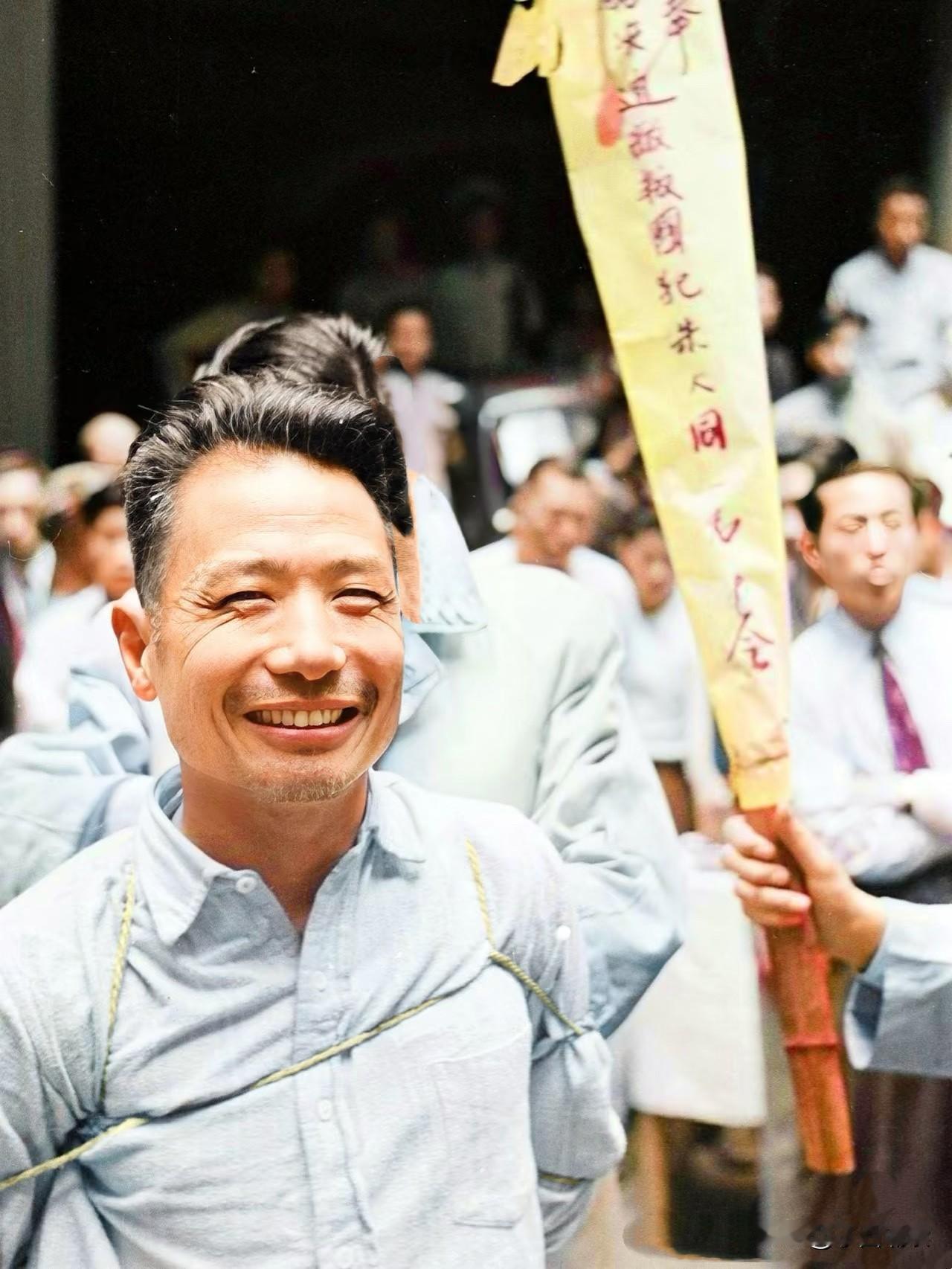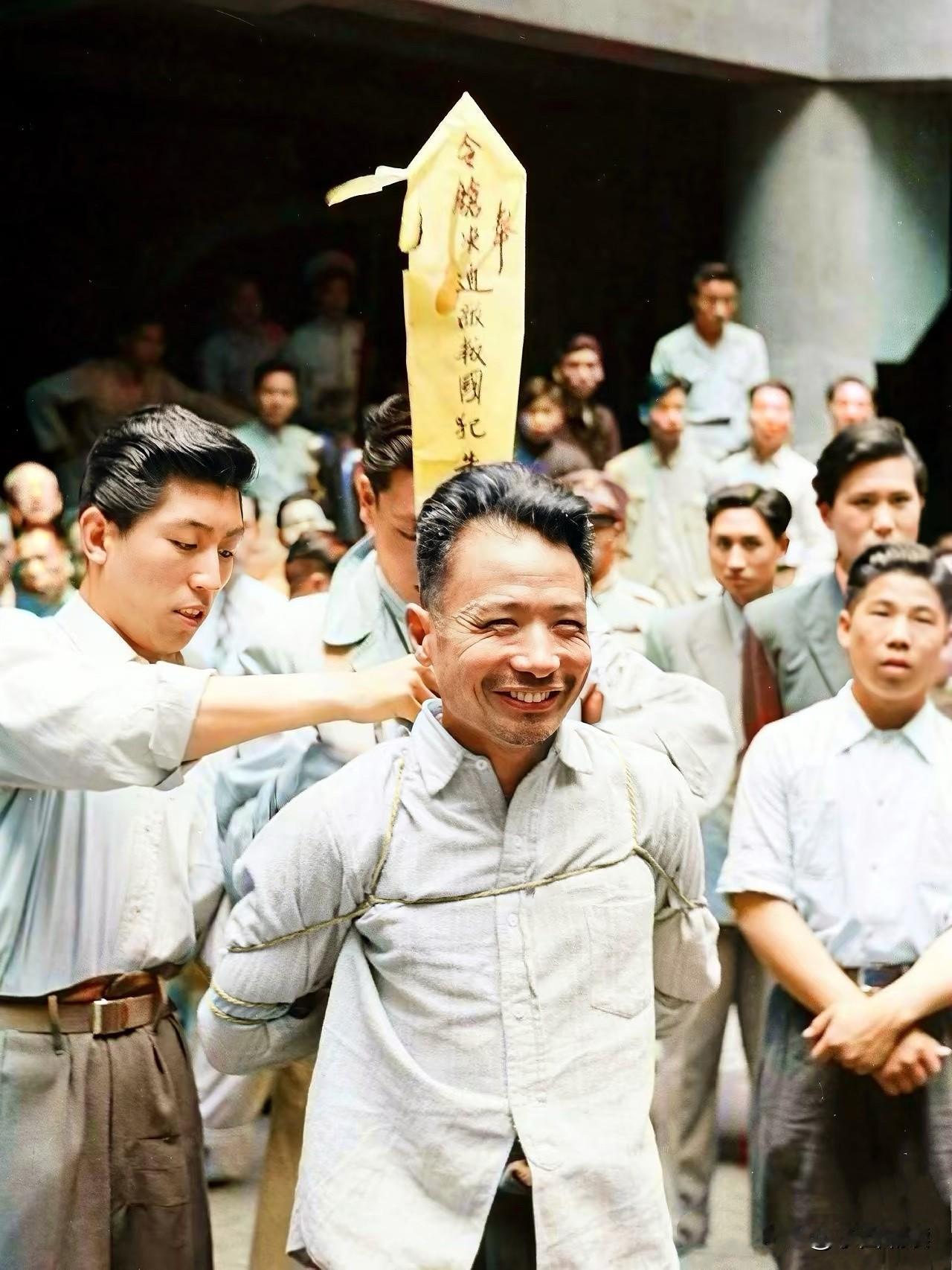 如果你们问我,英雄视死如归究竟是什么样子?我第一印象想到的就是他! 这是国民党警察在上海市中心公开处决刑犯现场过程。图中被绑之人名为朱大同,被指控的罪名为通敌叛国贼。朱大同在当时可谓臭名远扬,被人臭骂为汉奸,卖国贼。但真相并非如此,只有极少数人才知道,他的真实身份其实是我党地下工作者。但面对世人的指责与谩骂,他从不去解释。甚至面对公开处决时,依旧坦然面对、含笑赴死。