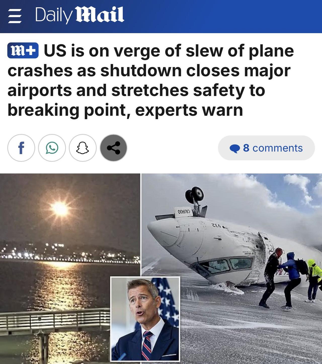 美国正濒临一系列空难:政府停摆关闭小型机场,安全保障已到崩溃临界点。 专家警告称,空中交通管制人员短缺已使美国领空充满危险,可怕的空难似乎几乎不可避免。 麻烦的早期迹象已经显现:最近,新泽西州的纽约自由国际机场、波士顿洛根机场、洛杉矶国际机场以及达拉斯的沃斯堡机场和拉夫菲尔德机场均发布了地面停飞通知。