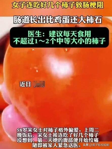 女子贪食柿子,肠梗阻找上门 近日,一女子因嘴馋连吃好几个柿子,结果腹部剧痛被紧急送医,确诊为肠梗阻。医生解释,柿子含鞣酸,遇胃酸易形成结石,阻塞肠道。该女子就是因短时间内大量食用,导致结石卡在肠道引发病症。在此提醒大家,柿子虽美味,但切不可贪吃,尤其是空腹时更要谨慎,以免给健康带来隐患。