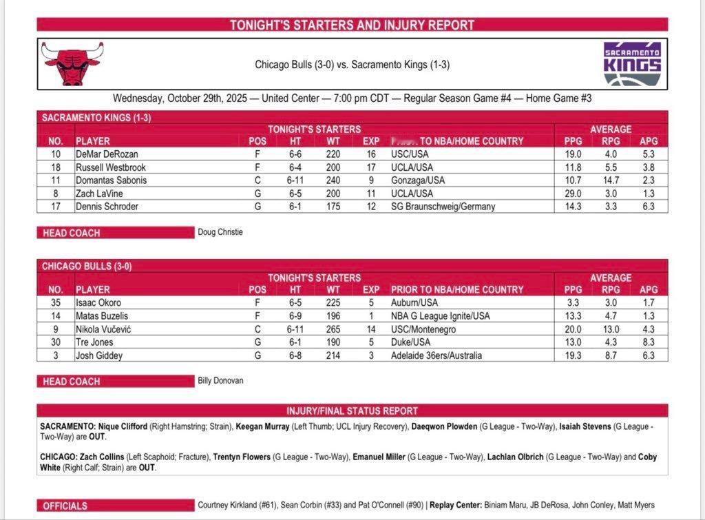 威少将首发出战!国王首发:施罗德、威少、拉文、德罗赞、萨博尼斯 雷霆首发:亚历山