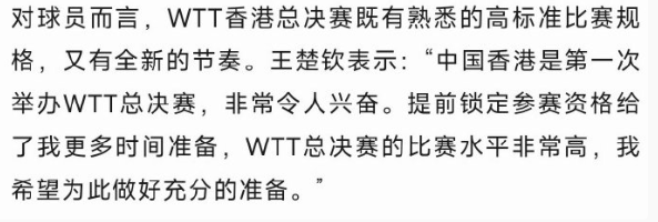 香港第一次举办wtt总决赛,王楚钦能够提前锁定参赛资格真的很厉害,太期待他的表现了