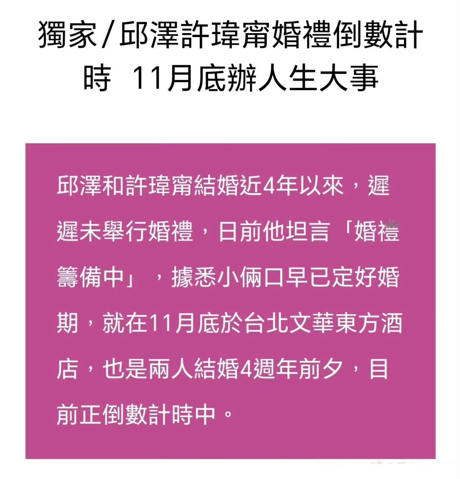 邱泽许玮甯11月底补办婚礼,两人2021.12.10官宣结婚,今年8.14孩子刚出生,祝福🎉