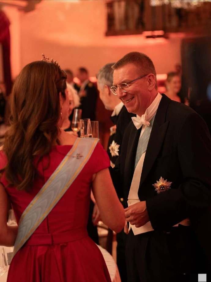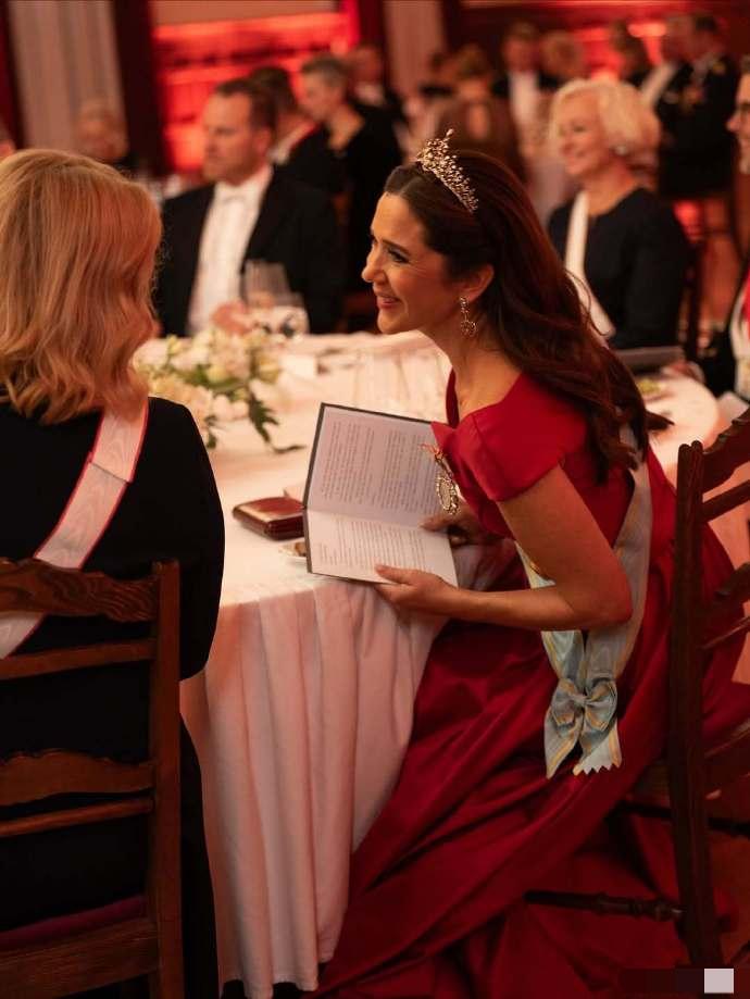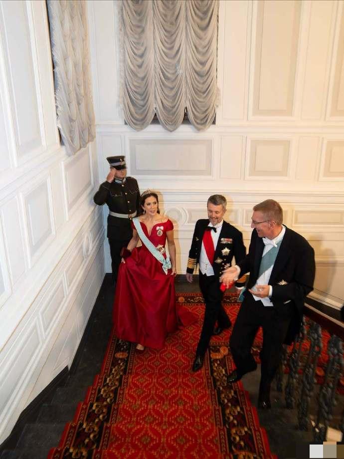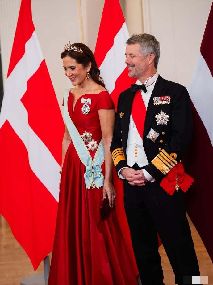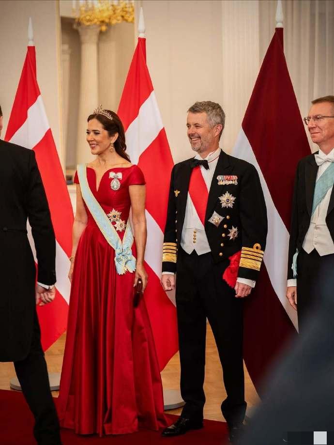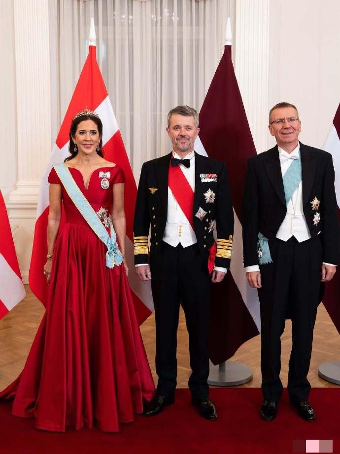 大玛丽@拉脱维亚展开个人视觉盛宴[爱慕] 丹麦王室夫妇在拉脱维亚进行国事访问。 在晚宴上,大玛丽王后盛装打扮, 适度露肤的正红色礼服端方雅致, 精致的皇冠和绶带彰显从容和贵气[赞]