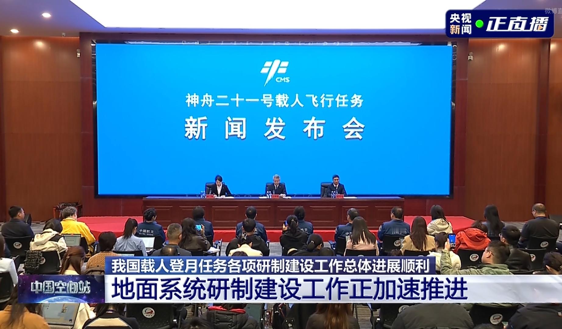 神舟二十一号 目前,载人登月任务各项研制建设工作总体进展顺利,长征十号运载火箭、梦舟载人飞船、揽月着陆器、望宇登月服、探索载人月球车等飞行产品已完成初样阶段主要工作,着陆场等地面系统研制建设工作正加速推进。