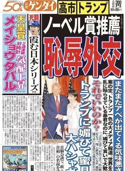 高市早苗谄媚奉承特朗普日本人不觉得丢脸吗? ------------------