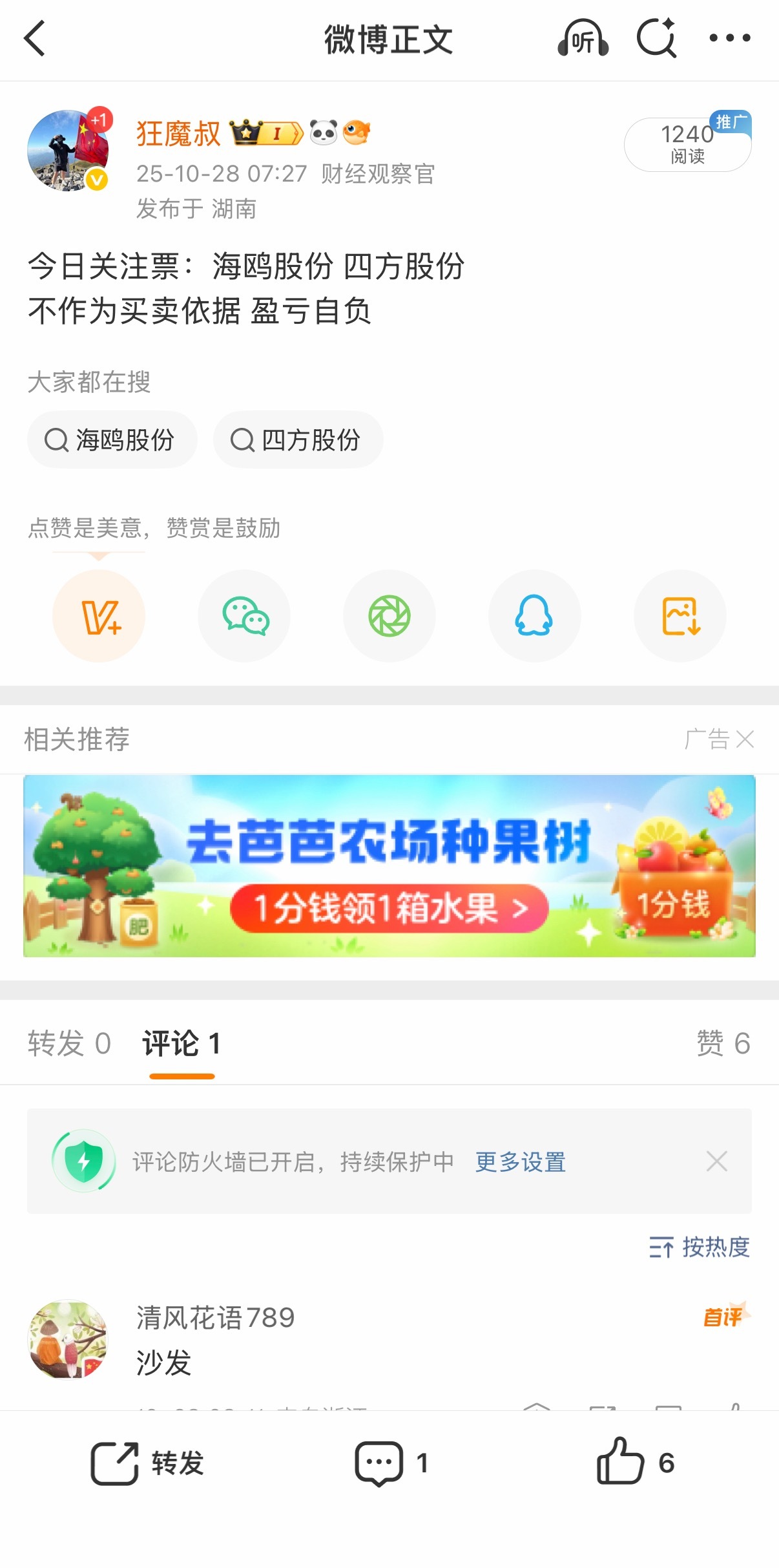 亲爱的粉丝们 四方股份我已经全部出来。而海鸥股份,我昨日说了看到我的价位我就会跑。早盘推荐的票我会操作那一支呢哈哈