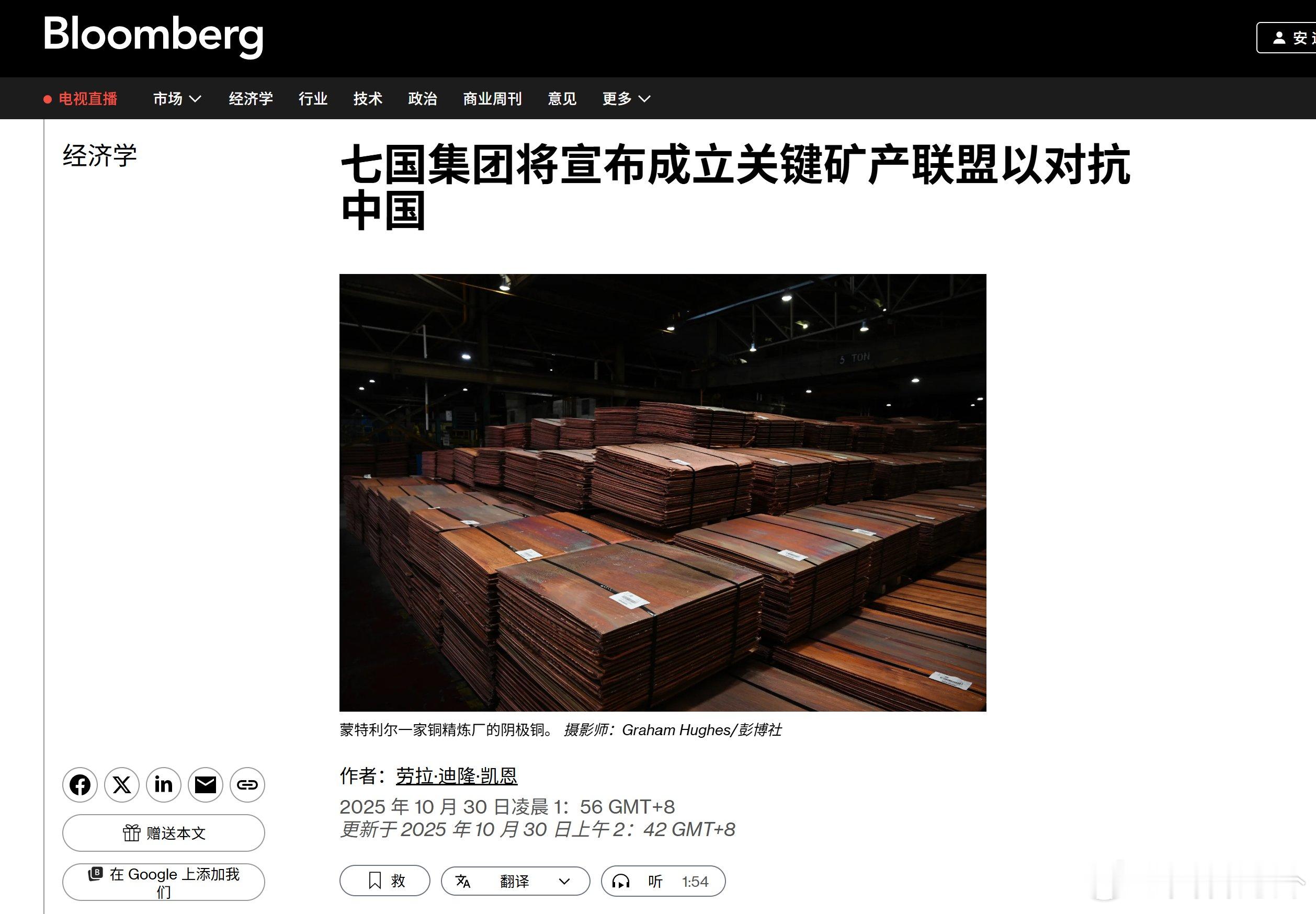 👉 “关键矿产联盟”或成G7最新的地缘经济工具,目标直指中国的稀土影响力。