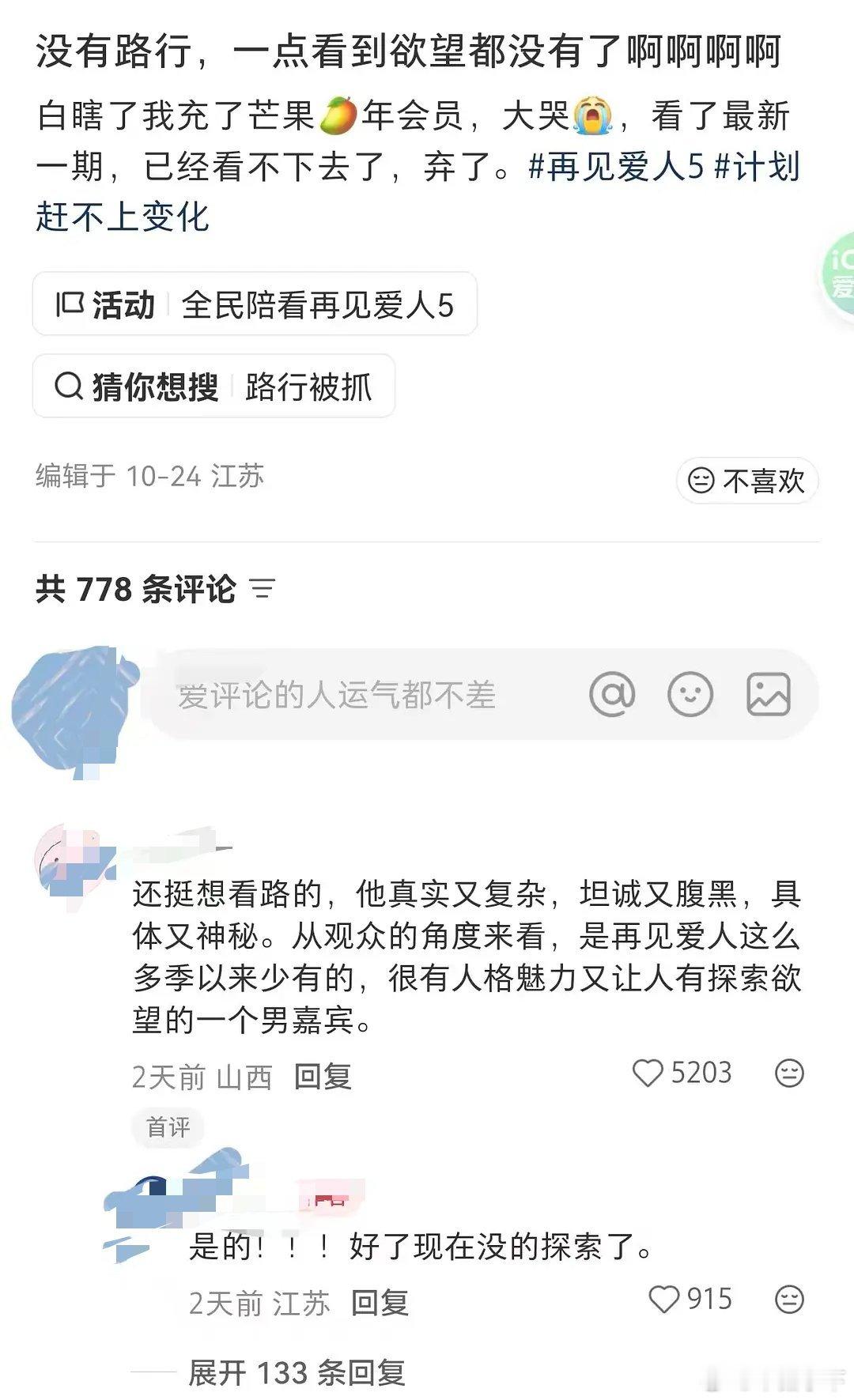 芒果台还是牛!《再见爱人5》里面嘉宾路行有争议,节目组直接就把他的镜头全部给