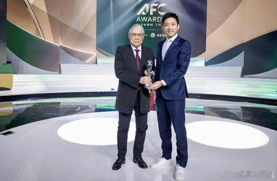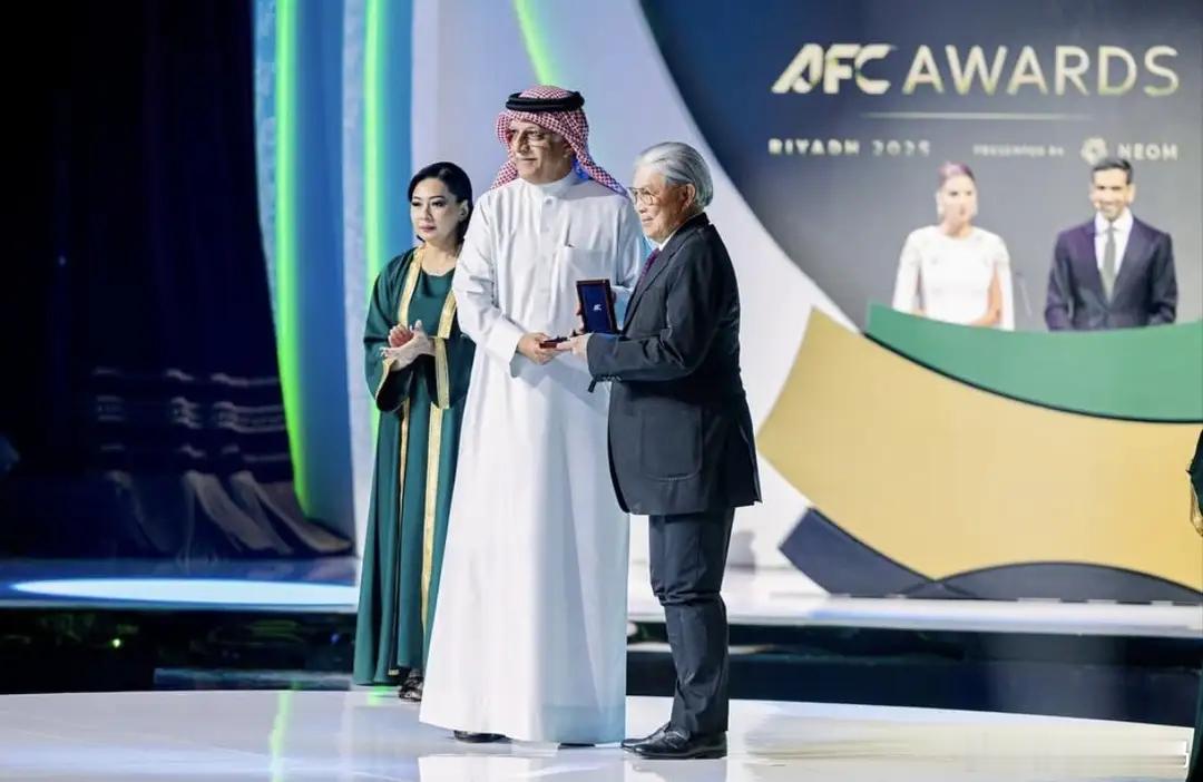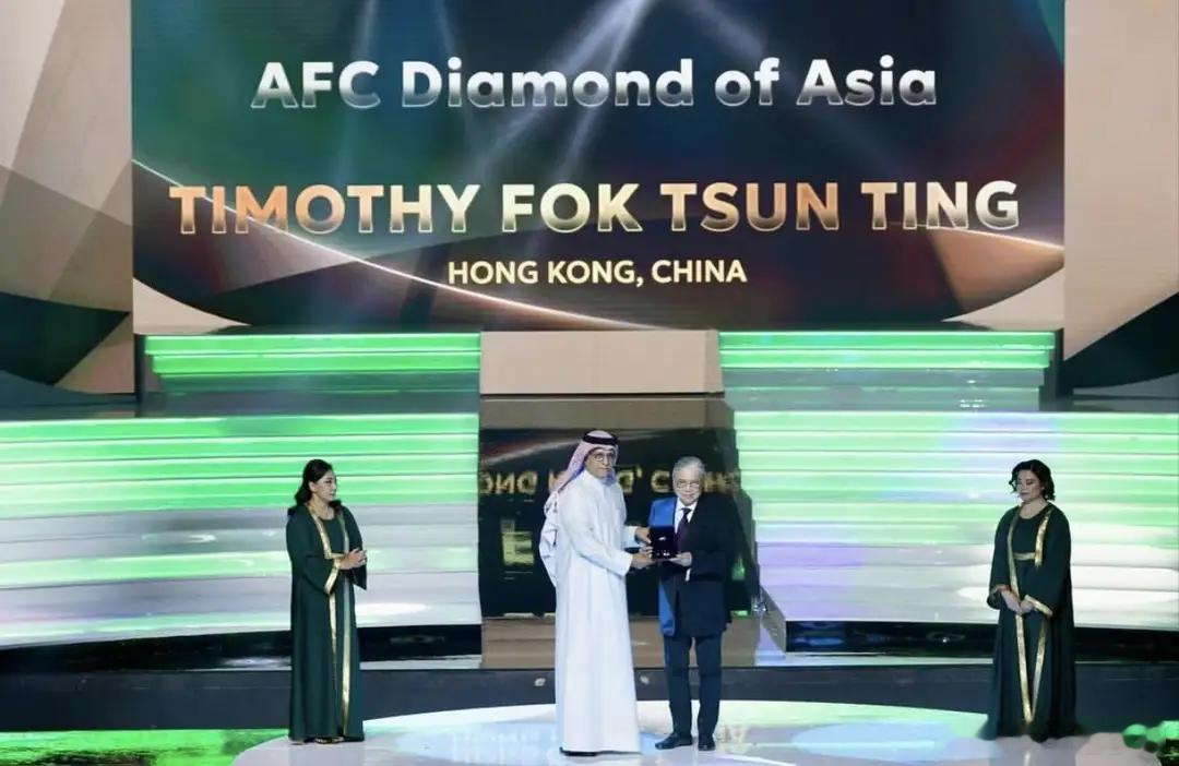 79岁霍震霆获亚洲足协钻石奖,霍启山在场见证,与父同台直言感动