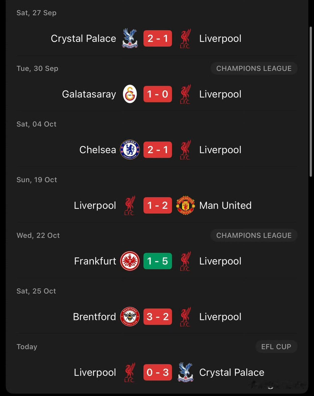 水晶宫凭借高效反击与战术革新,成为许多强队的克星。本赛季则把利物浦拿捏得死死的。 如今的水晶宫球迷几乎懒得庆祝了,因为这已经是他们连续第三场击败利物浦。 他们先在社区盾杯决赛取胜,接着在英超联赛获胜,如今又在卡拉宝杯占据上风。 水晶宫球迷们似乎已经习惯了彻底压制利物浦的局面。 而利物浦球迷恐怕也已经麻木了。接下来,等待斯洛特的是英超四连胜的维拉与欧冠王中王---皇马!