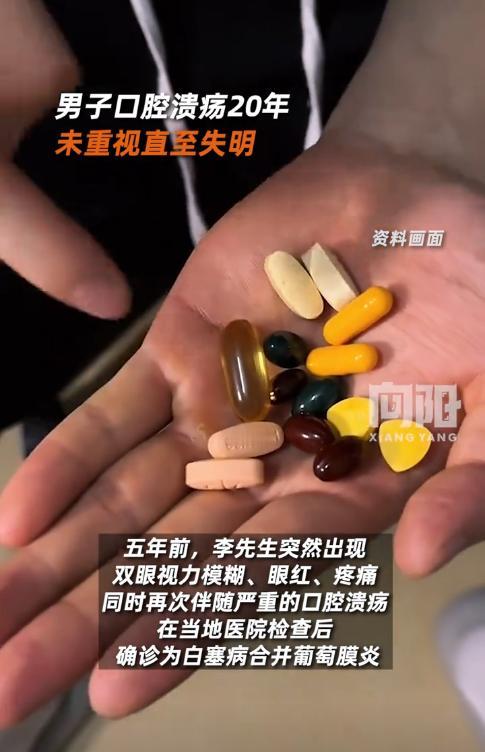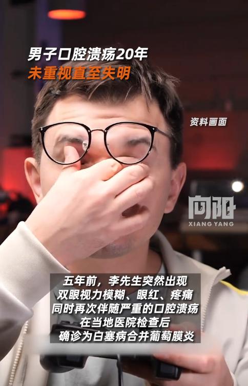 陕西,一男子口腔溃疡反复20年,他以为是上火导致的,所以并未重视,直到5年前,男子双眼突然变得模糊、疼痛,这才去医院检查,发现是自身免疫病引起的,之后又因自行停药导致右眼失明!网友:心真大啊。   李先生从十几岁开始,口腔溃疡就成了常客,每个月总要发作一两次,每次都要折腾一两周才能好转。   喝凉水时的刺痛、吃饭时的不便,并没有让他放在心上,反而和大多数人一样,固执地认为这只是“上火”或者压力大导致的小问题。   家里人劝他去医院看看,他总说“吃点维生素就好了”,就这样硬扛了整整20年,期间从未做过一次正经检查,只是偶尔服用维生素类药物应付了事。   谁能想到,这看似不起眼的小毛病,会在二十年后以如此残酷的方式“报复”回来。   五年前的一天,李先生突然发现自己看东西变得模糊不清,眼睛还伴随着阵阵疼痛。   起初他以为是熬夜没休息好,可疼痛持续了两天不仅没缓解,反而越来越严重,这才慌了神,赶紧去家附近的医院检查。   检查结果如同晴天霹雳,他被确诊为白塞病合并葡萄膜炎,病因是身体免疫系统出现了异常,而长期反复的口腔溃疡正是这种疾病的典型表现之一。   医生给他开了针对性的药物,反复叮嘱他必须按时服药,定期复查,绝对不能擅自停药。   服药一个多月后,李先生感觉眼睛不疼了,看东西也清晰了,便觉得自己已经痊愈。   他把医生的叮嘱抛到九霄云外,没跟医生沟通就偷偷停了药,复查更是从未放在心上。   这样的侥幸心理,最终将他推向了深渊。   三个月前,李先生的眼睛再次出现疼痛、发红的症状,这一次的病情发展得异常迅猛,仅仅七天后,他的右眼就彻底失去了光明,三天后,左眼视力也开始急剧下降。   他紧急转诊到西安市第四医院,医生诊断为白塞病复发引发的严重眼炎和继发性青光眼,虽然经过科学治疗,左眼视力明显好转,但右眼因为长期炎症反复,视神经已经严重受损,视力再也无法恢复。   事实上,想要避免这样的悲剧,并没有那么复杂。   医生早就明确提醒过,口腔溃疡如果一年发作超过三次,就不能再简单归为“上火”,必须及时去医院排查病因,这很可能是身体发出的健康警报。   养成良好的生活习惯和饮食习惯至关重要,规律作息、适量锻炼、保持情绪稳定,避免暴饮暴食和长期熬夜,都能有效降低自身免疫性疾病的发病风险。   更重要的是,治疗期间必须严格按照医生的要求用药,不能因为感觉症状缓解就擅自停药或增减药量,定期复查也同样关键。   身体的每一个信号都值得被重视,反复口腔溃疡从来都不是“忍忍就过去”的小问题。   李先生用右眼失明的代价,张先生用近乎失明的左眼,给所有人敲响了警钟。   不要等到小毛病发展成不可逆的重症,才追悔莫及。   正视身体发出的警报,摒弃“小病不用看医生”的错误观念,及时就医、科学应对,才是对自己健康最基本的负责。   今天的分享到这里就结束了,大家对此事有何看法,欢迎在评论区留言和讨论,感兴趣的可以点击头像加关注,我将每日更新优质内容,我们下期见。
