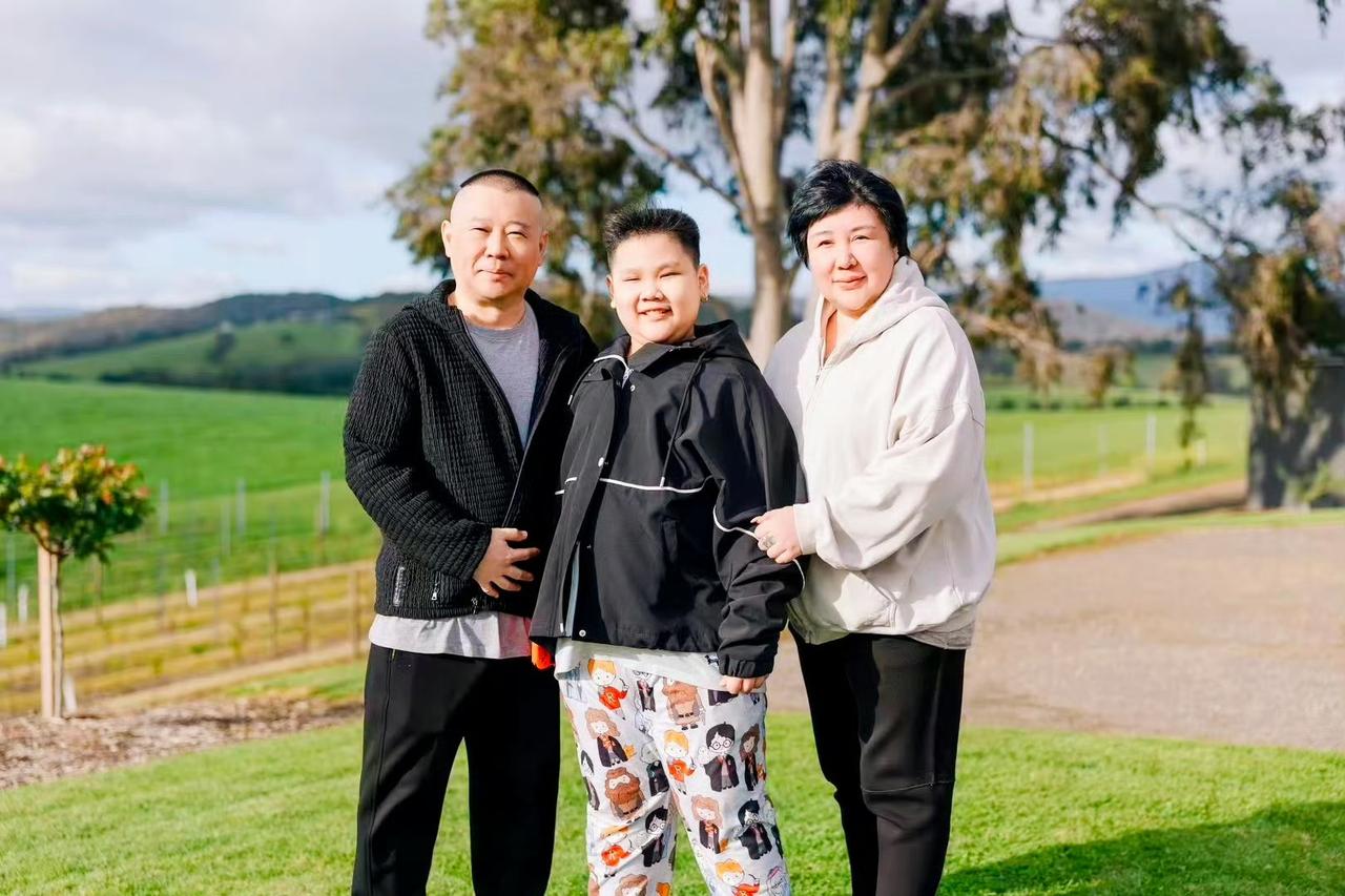 瞧这一家子,笑得那么开心! 有人说,照片背景是在澳洲葡萄庄园,山清水秀很惬意,郭汾阳身高已经快赶上父亲了! 相比弟弟,成长期的郭麒麟遇到父亲创业期,待遇不可同日而语,郭汾阳出生时郭德纲已经功成名就,性格变得温厚宽容,这也怪不得郭德纲,时也命也。 相比哥哥,郭汾阳更加放得开,郭麒麟温润谦逊又彬彬有礼,情商智商双高又礼貌周到,但是,好像从来没有如此恣意地开怀大笑过。 兄弟二人相像之处甚少,郭汾阳,有没有几分像小岳岳?