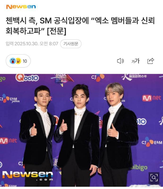 CBX称在和EXO成员直接沟通CBX回应SM称其说谎30日,CBX方发公告回应