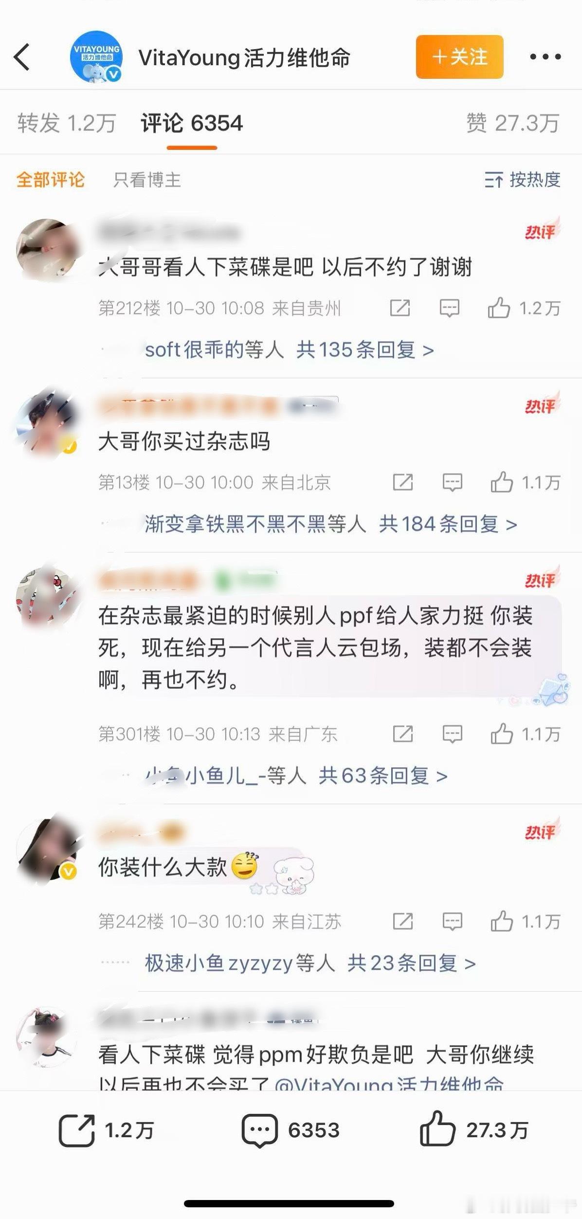 Vtm活力水评论区,因丁禹兮《山河枕》开播,云包场7200分,梓渝这块的杂志都没见他支持过,当时开售ppm积极冲xl,结果到现在,多少有点心寒了[揣手]