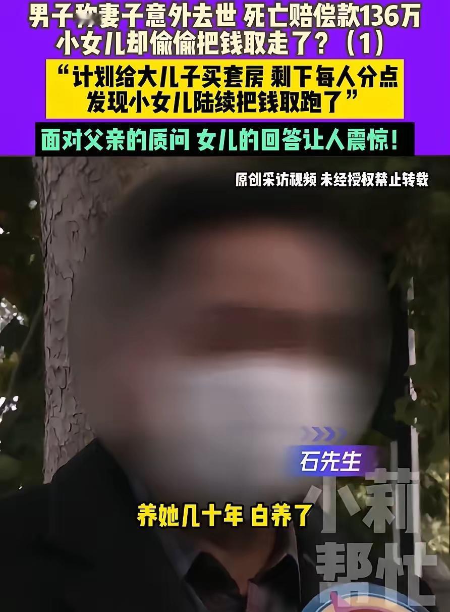 见过坑爹的,没见过坑女儿的!河南濮阳这事儿,一开始听着气人,后来反转得更让人无语——石先生说妻子离世的136万赔偿款,被小女儿偷偷转走,还骂女儿是“养不熟的狼”,结果女儿掏出法院判决书、银行流水一摆,真相直接打脸! 原来钱是石先生自己取走还外债的,女儿反倒帮他还了不少,法院还判他得还女儿19万。面对铁证,他找了个“手机要充电”的借口溜了,之后电话都打不通,这操作也太没担当了! 最寒心的不是他动了这笔救命钱,而是他倒打一耙的样子。女儿还顾着给他留面子,他却连亲情都不顾。钱没了能赚,可把女儿的信任败光了,这亲情还能补回来吗? 你们说,遇到这种颠倒黑白的家人,是该像这女儿一样有理有据维权,还是会为了所谓的“亲情”妥协呢?