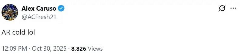 泪目!卡鲁索仍心系旧主! 在里夫斯绝杀森林狼后,雷霆后卫卡鲁索发布社媒惊叹小里的表现“AR cold lol”! 这位20年的夺冠功臣,曾多次表达对离开湖人的不舍,值得一提的是小里初期还一度被拿来和卡鲁索进行比较,且因为湖人后场防守问题,有不少媒体球迷呼吁用小里交易换回入选最佳防阵的卡鲁索,不过卡鲁索最终从公牛转投雷霆,去年再次问鼎总冠军!