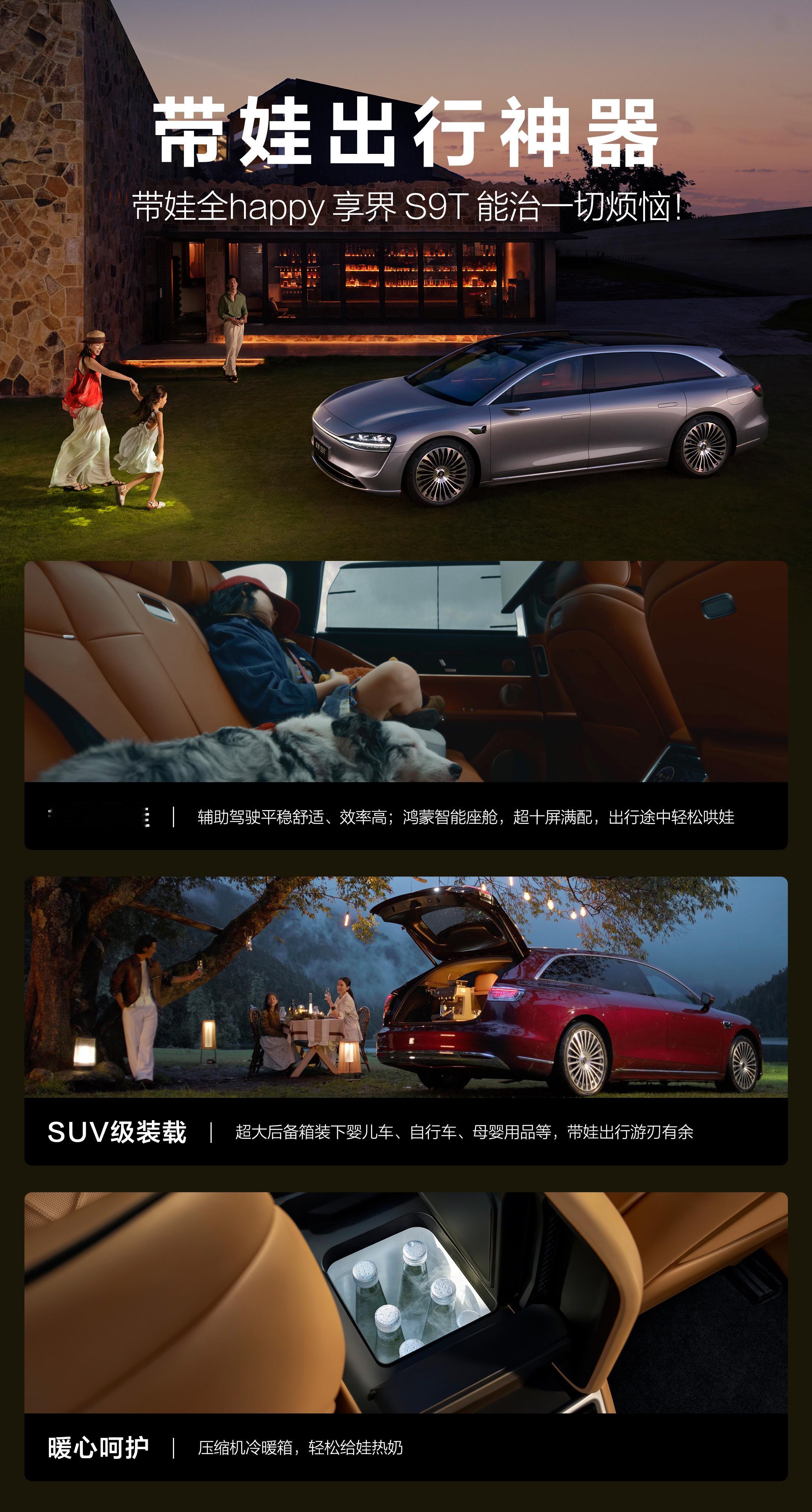 享界S9T,鸿蒙智行首款旅行车,打破了旅行车只为远行的想象边界。无论是上班通勤、城市休闲、露营轰趴,还是亲子出行,它都能切换自如。从通勤解压舱到露营大床房,从私人会客厅到健康母婴舱,S9T用智慧和空间重新定义行的意义。