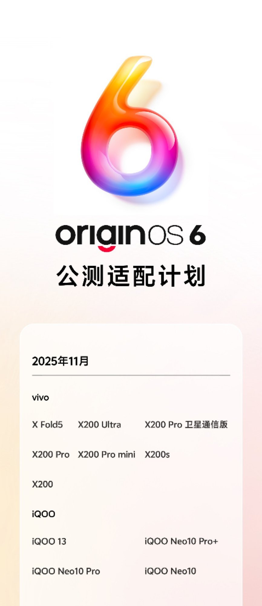 OriginOS 6第一批机型已经开始公测报名了,看看有没有你们的机器吧[偷笑][偷笑]
