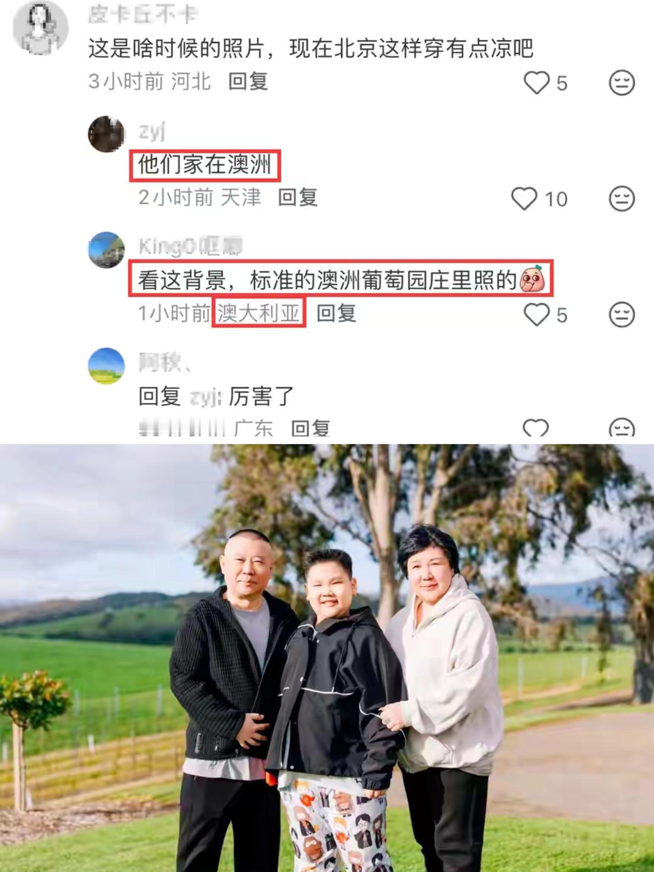 郭德纲带妻儿澳洲度假,大庄园挽手合照,郭汾阳扎耳洞手机不离手 谁能想到郭德纲一家澳洲度假照,又把“偏心”话题吵上热搜!一家三口在葡萄庄园挽手合照,郭德纲笑得合不拢嘴,王惠温柔护着儿子,10岁的郭汾阳妥妥的全家核心。 这孩子不仅身材壮实比妈妈还显敦实,居然还扎了耳洞,全程手机不离手,被宠爱的痕迹藏都藏不住。反观大儿子郭麒麟,从小被严格管教,如今成了网友口中“郭德纲最好的作品”。 之前家宴上郭麒麟站着、郭汾阳坐着的争议还没散,现在小儿子的娇养模样更让网友热议。其实育儿没有标准答案,严管出了郭麒麟的独立,宠爱也未必养不出好孩子。 但关键是手心手背都是肉,网友纠结的从来不是宠不宠,而是公平与否。 你觉得郭德纲对两个儿子的教育方式,哪种更靠谱?来评论区聊聊~郭德纲人生感悟