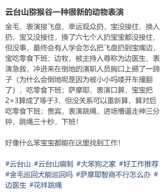 云台山猕猴谷一种很新的动物表演,好像什么笨宝宝都能在这里找到工作!
