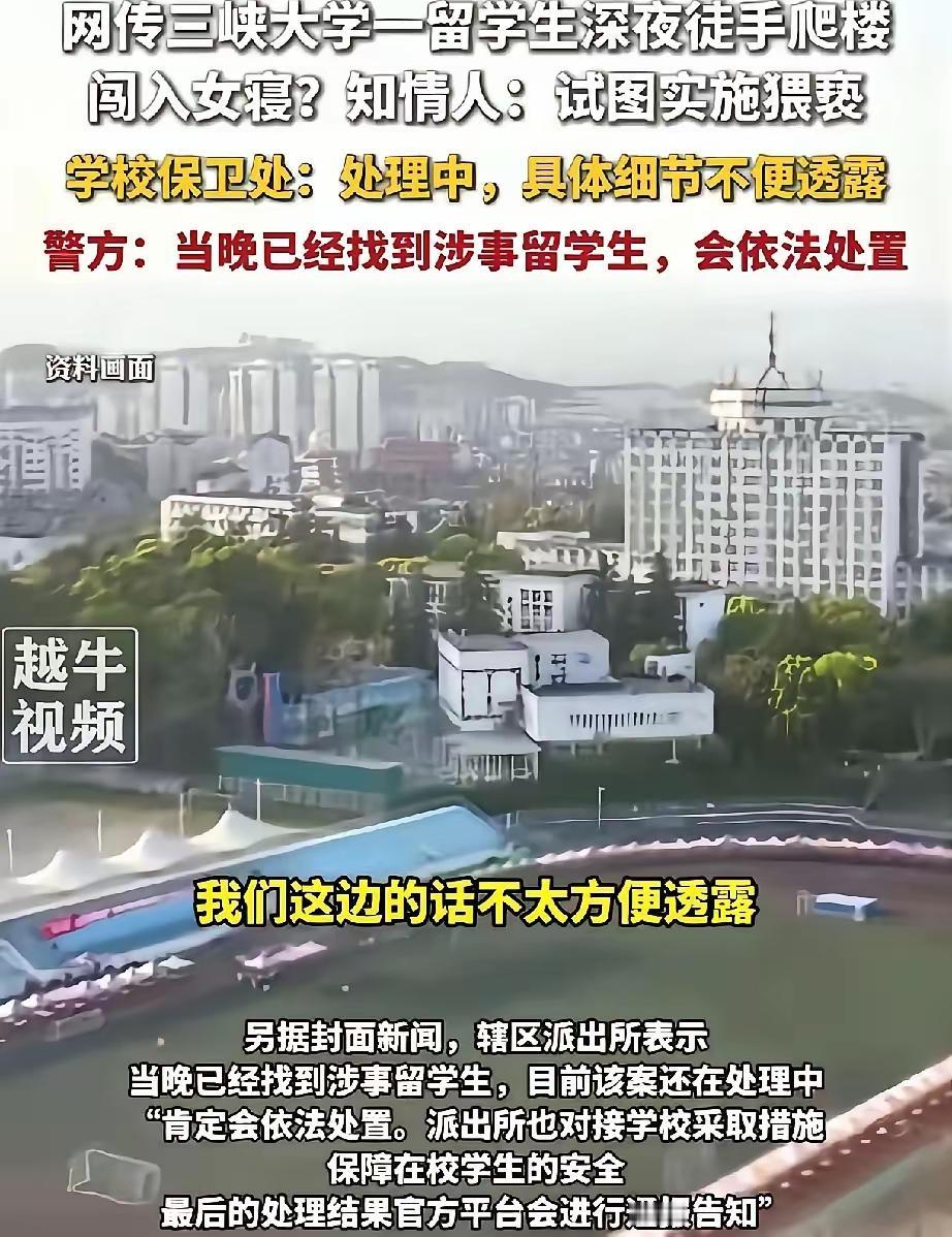 对待留学生,用词真的是太温柔了。 三更半夜翻窗闯进女生宿舍,明眼人都能猜到意图不单纯,可校方通报只轻飘飘定了“猥亵”,和更严重的行为比起来,处罚力度直接打了折。 更让人费解的是,找到涉事留学生的表述是“找到”,而非“逮捕”“抓获”,这差别可不是一星半点。有网友说这是为了顾全大局,怕引发国际纠纷,才用了影响小的措辞和行动。 但校园安全面前,没有“特殊对待”的道理,不管是本国人还是外籍人员,犯错就该一视同仁,该怎么定性就怎么定性,该怎么处罚就怎么处罚。 过度“温柔”反而会让规则失衡,也寒了学生和家长的心。 你觉得对待这类行为,该坚持一视同仁还是考虑所谓“大局”?评论区说说你的看法~