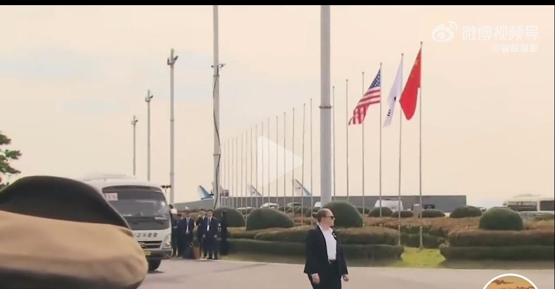中美会晤结束,红旗车离开,五名韩国安保立刻跟车小跑起来…… 他们一人守着一个车窗