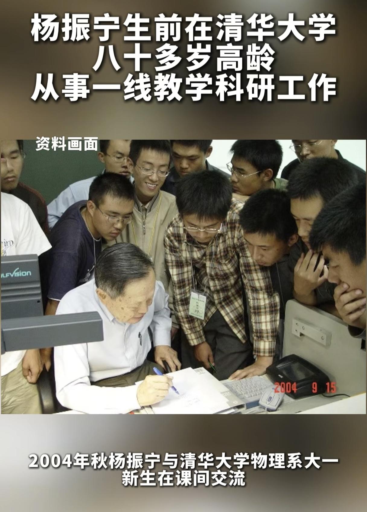 杨振宁82岁时仍坚持为大一新生上课,那时的他刚从美国回到清华园,他说:“教书的人最得意的事情,就是有学生真学到了一些东西”。 82岁的年纪,很多人早已选择退休养老,而杨先生回国后仍选择发光发热。 2004年9月,在大一新生开学之际,杨先生站上清华第六教学楼的讲台,对100多名学生从秒、光速等最基础的物理概念开始教《物理学基础》。 一节课一个半小时,杨先生都是按时上课,一直坚持了整整一学期,恨不得把自己一生所学的知识都传授出来。 80多岁的思维和口才,可能很多年轻人都比不了,讲课的时候,眼神都在发光。 他通常能把复杂的知识讲的通俗易懂,学生也很爱上他的课。 照片中,杨先生平易近人,没有没一点架子,学生把杨先生围坐一团,专心致志的听着杨先生娓娓道来。 这些孩子多幸运呀,能亲身聆听科学巨人的教诲,也感谢杨先生,为祖国的发展培养了大批优秀人才。 谁能做杨老师的学生,也是一生荣幸啊。
