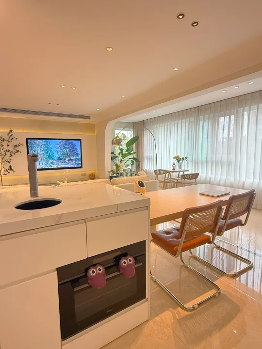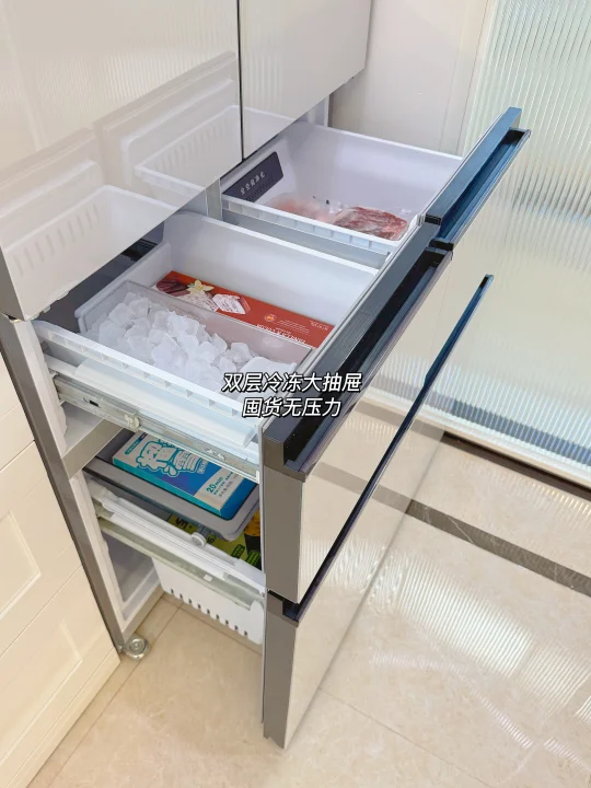 我家建面140平,套内120平 三室一厅 入住四年多,家里还是维持的整洁又舒服 今天分享几个装修细节和入住后的收纳技巧,小户型快来抄作业吧! ✅关于硬装 我家硬装没做复杂造型,全靠 “基础款 + 细节” 赢好感。地面通铺杏色地砖,没装过门石,客厅到阳台视觉上拉通,显大不止一点点;全屋乳胶漆,没做满墙岩板、石膏线背景墙,后期换软装风格也超方便。 ☝️关于收纳 住久了不杂乱,全靠 “藏得多、拿得顺”。客厅一整排收纳柜,从左往右依次是工具柜、被褥收纳柜、零食酒吧柜、次净衣包柜、mini储藏间、鞋柜。厨房全是抽屉式收纳!碗碟、调料分层收纳常用的盐糖磁吸在珐琅板上,台面清清爽爽。 💡餐厅设计 我家餐厅设计遵循简单又实用的原则, 冰箱旁放了2组宜家收纳柜,台面上放上咖啡机、水杯超方便。 旁边的这台美菱小确杏510冰箱是我的哆啦A梦小口袋。 先说颜值,真的让我爱不释手。 银杏璟玻璃面板满满的温馨治愈感, 59.9cm 超薄机身,90 度直角开门加上底部散热设计, 不仅能严丝合缝地嵌入标准橱柜,单独摆放也不突兀,和我家的装修风格完美适配。 💕宅家的时候就爱做冰饮,以前还要自己用冰格冻冰块,现在换上这台冰箱后简直太方便。 它的独立制冰系统 60 分钟就能急速出冰。冰爽快乐随时都有✅太方便啦☺️ 而且它还有自动清洁功能,用起来省心又安心。 ✅再说说食材保鲜这块,它做得也很棒。 MNC + Pro 主动净味除菌功能超实用,除菌率≥99.99%,净味率≥99.5%,异味跑得远远的,食材能得到很好的呵护。 以前我家冰箱总有股怪味,现在完全没有啦。 冷藏室的 -3.5°C 零冲击微冻舱也超贴心,肉放进去微冻 7 天,拿出来不用解冻就能切,做菜的时候方便太多。 而且它还有美妆空间,化妆品和护肤品也有了专属的 “小窝”。 💕现在每天回家,打开满满当当的冰箱满是安全感。当初入手美菱小确杏 510 冰箱这个决定太明智啦!实用又好看,给我的生活带来了大大的便利。真心推荐给每一个正在为选冰箱发愁的小伙伴,相信它也能成为你家居生活的得力助手~