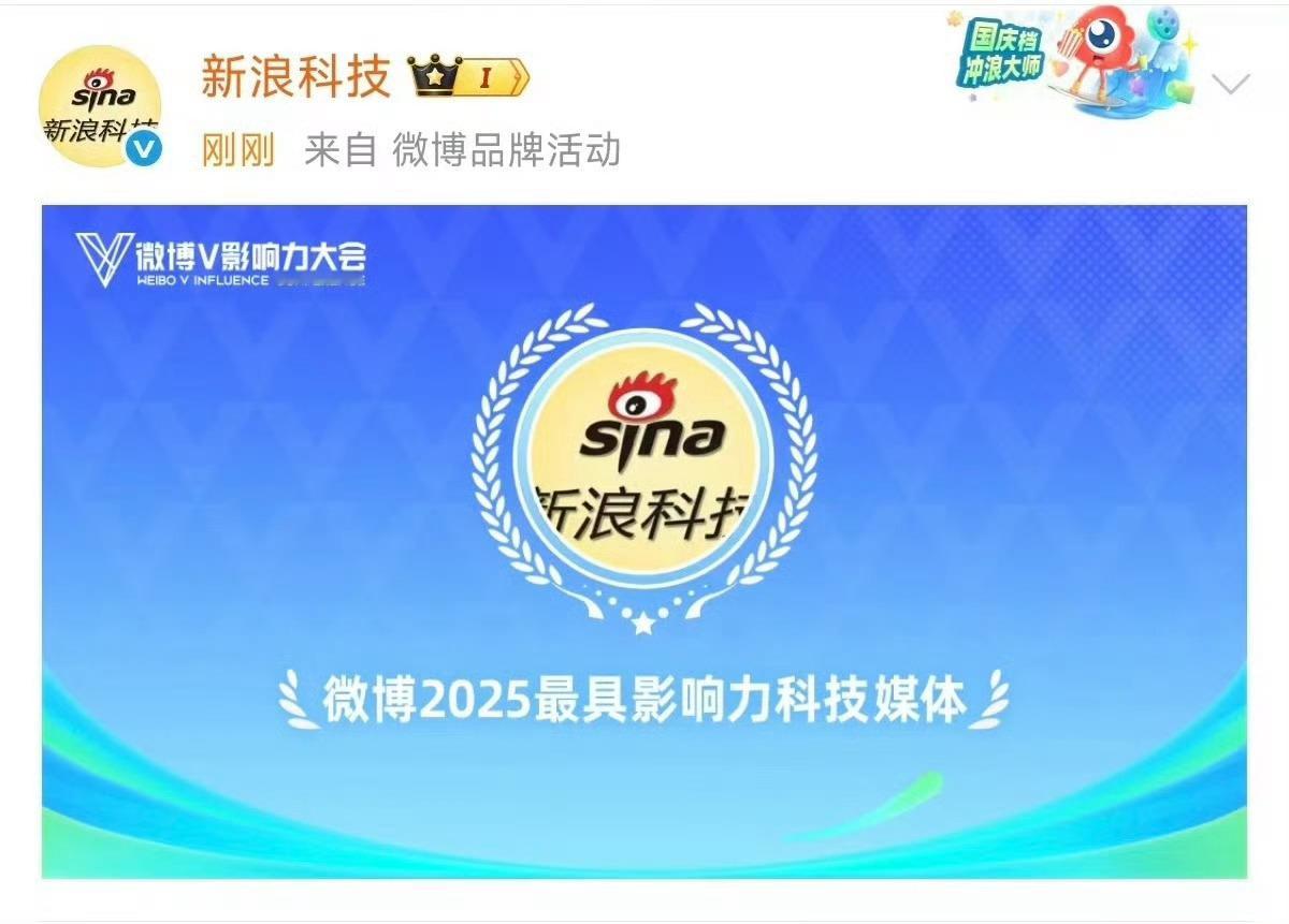 微博给新浪科技安排了个“最具影响力科技媒体”[笑而不语]